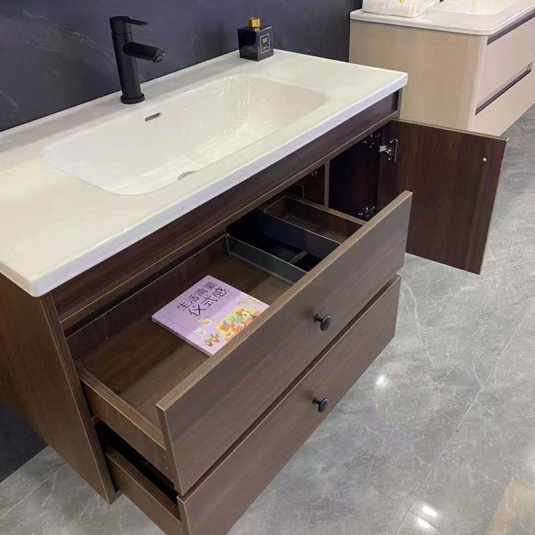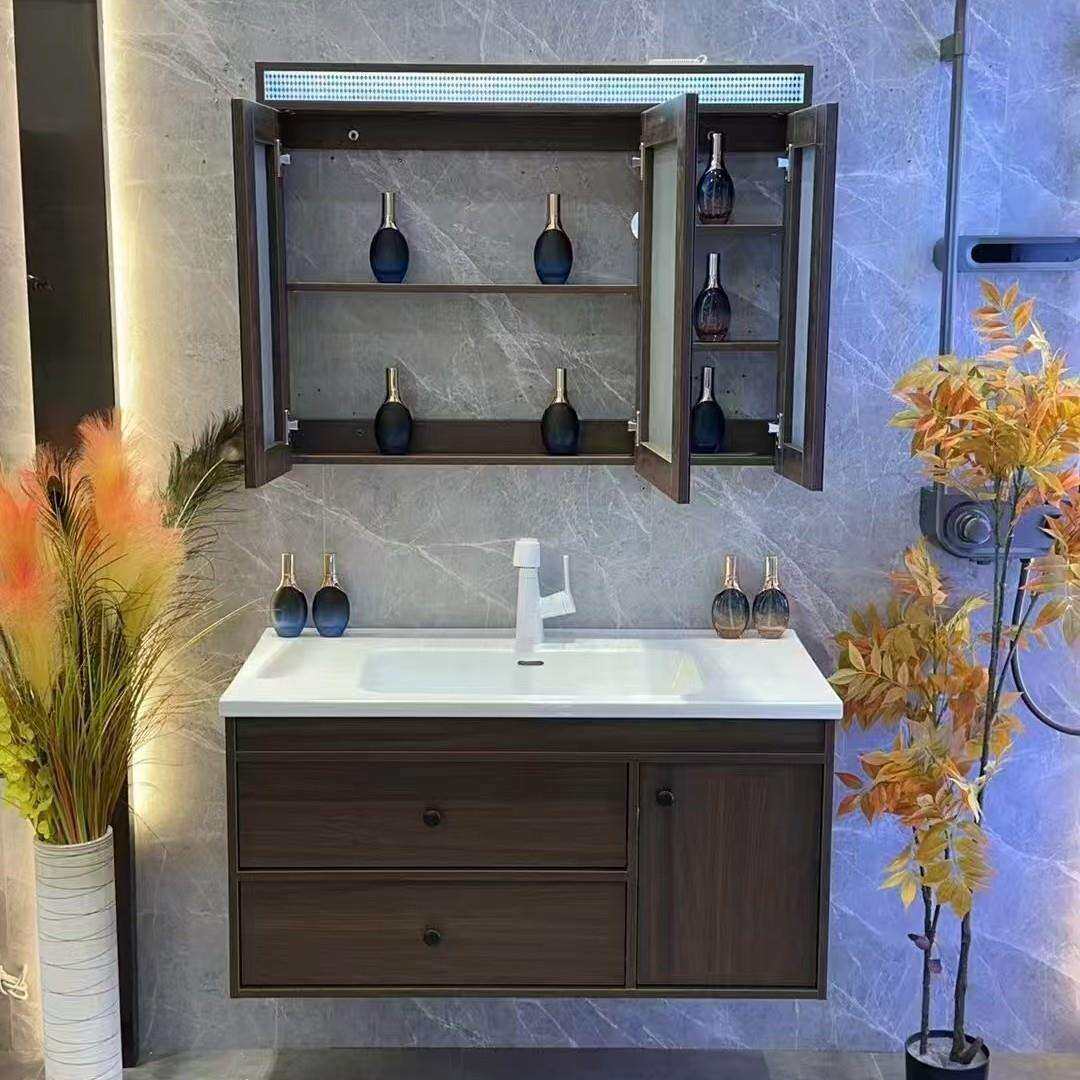 2025年中古风陶瓷一体盆浴室柜,融合传统东方美学与现代实用设计,打造雅致卫浴空间。柜体采用优质实木材质,搭配哑光胡桃木纹,质感温润,彰显古朴韵味。陶瓷一体成型面盆,线条流畅,易清洁且抗菌防污。下方大容量储物柜,分层收纳洗漱用品,保持台面整洁。上方配备带LED灯带的收纳镜柜,内置多层隔板与插座,兼顾照明、储物与充电功能。整体设计简约而不失格调,既满足日常使用需求,又提升空间艺术氛围,是现代家庭追求品质与美学兼具的理想之选。