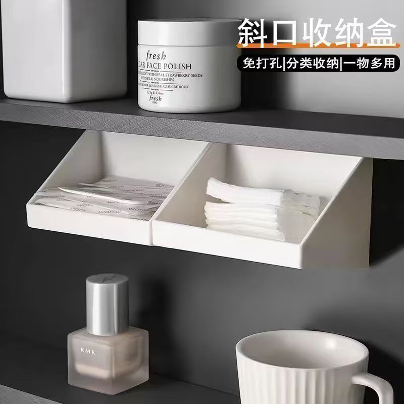 淘镜柜收纳盒卫生间洗漱台化妆品口红置物架浴室壁挂式斜口整理盒子
