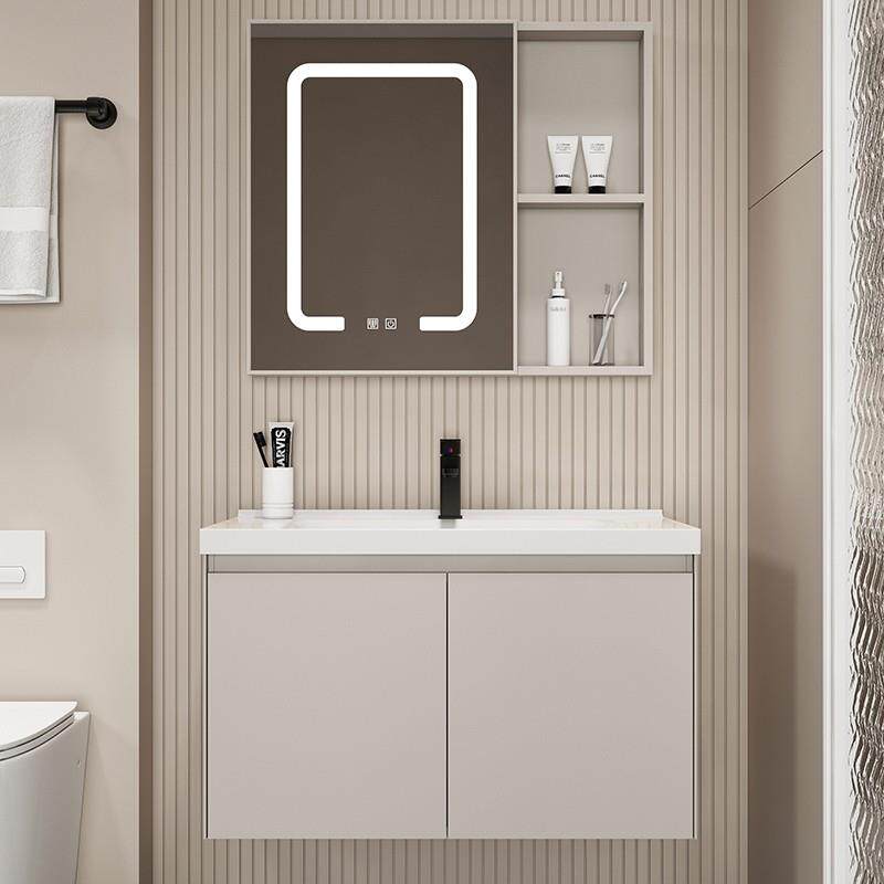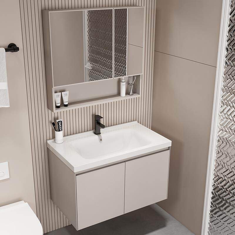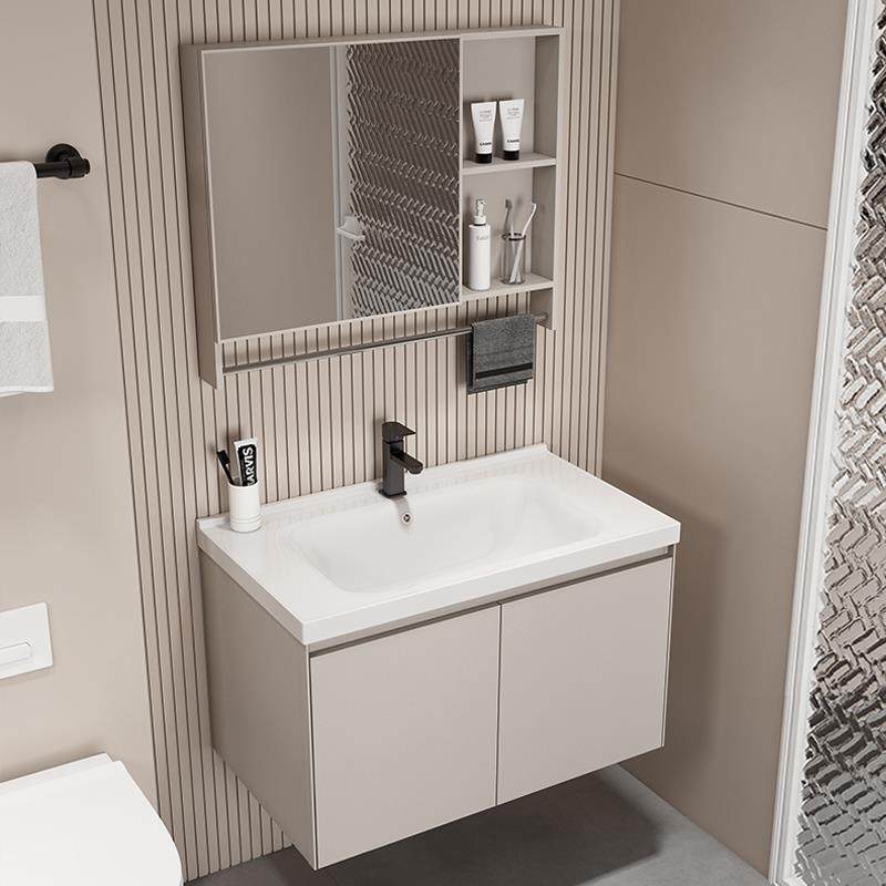 2025新款陶瓷一体盆洗手盆小户型迷你圆角陶瓷浴室柜奶油风智能卫