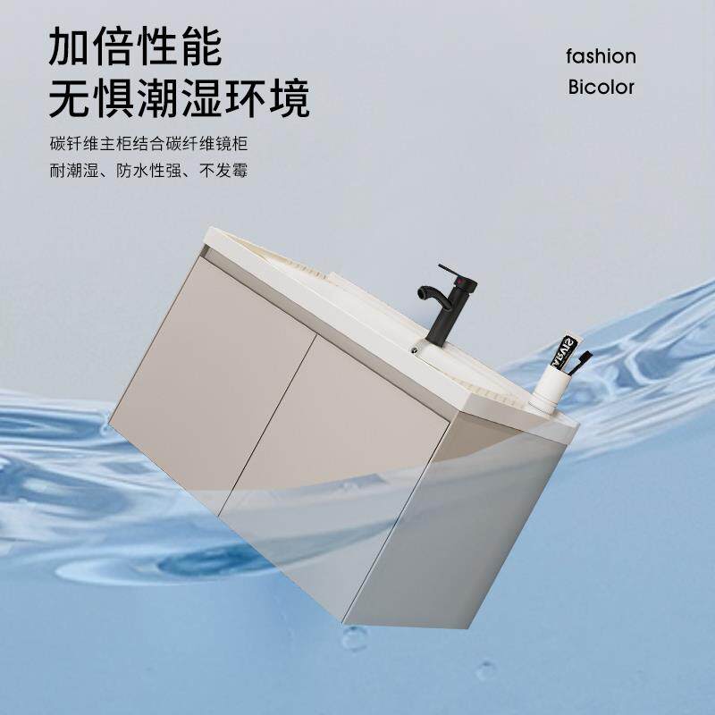 天2025新款陶瓷一体盆洗手盆小户型迷你圆角陶瓷浴室柜奶油风智能卫