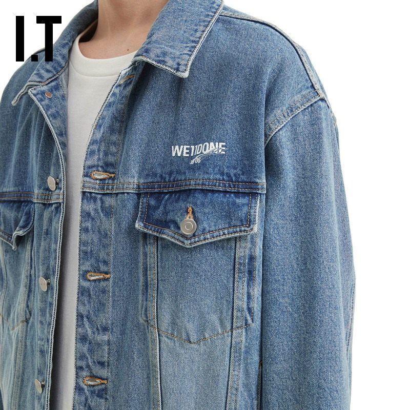 天猫IT We11Done男装宽松牛仔夹克新款率性街头水洗磨白外套913UBLMP