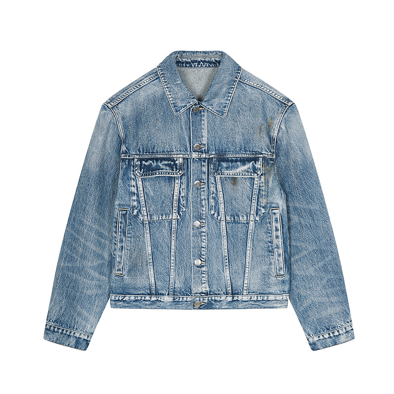 速写男装2024早春新款男士短款水洗牛仔夹克,融合复古做旧工艺与现代时尚剪裁,打造都市型格新风尚。采用优质棉质面料,亲肤透气,穿着舒适。经过精致水洗处理,呈现自然褪色与磨白效果,复古韵味十足。短款设计拉长腿部比例,利落有型,轻松搭配卫衣、T恤或衬衫。多口袋实用布局兼顾美观与功能性,金属拉链与铆钉细节彰显质感。无论是日常通勤还是休闲出街,这款夹克都能轻松驾驭,展现男士随性而不失品味的穿搭态度,是早春衣橱的必备单品。