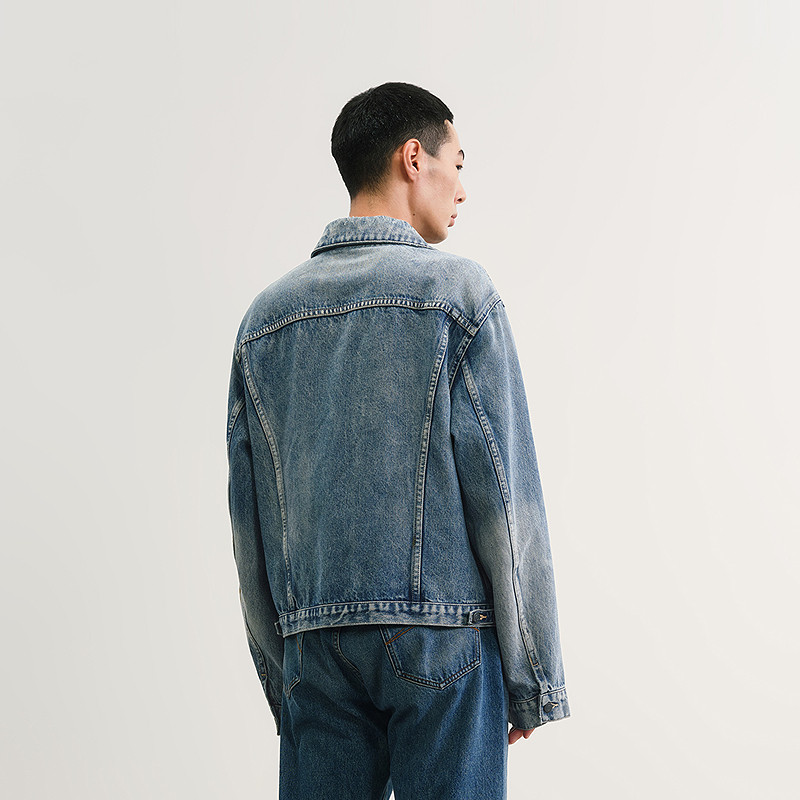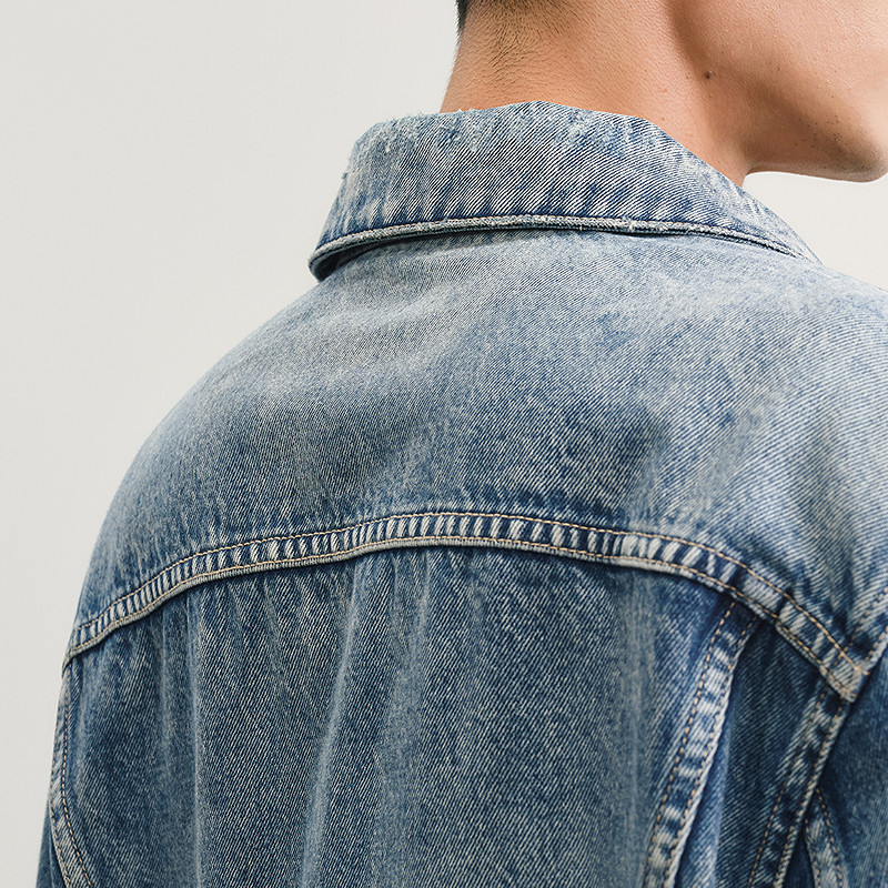 天猫速写男装早春新款男士外套短款水洗牛仔夹克棉质复古做旧外套时尚