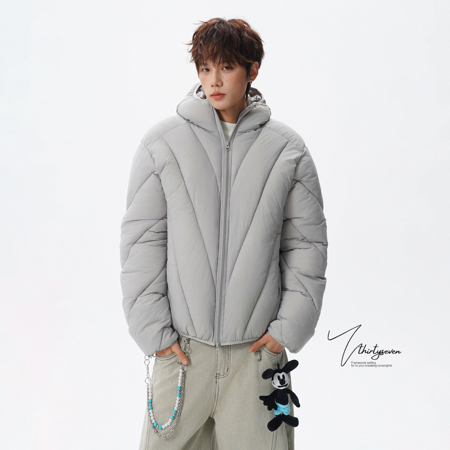 V37美式解构分割排骨设计感棉服,专为冬季打造,融合潮流美学与实用保暖。采用重磅加厚棉质面料,内里填充高品质羽绒棉,锁温抗寒,轻松应对严寒天气。独特解构式排骨分割剪裁,打破传统棉服臃肿印象,线条利落,层次分明,彰显美式街头风格。连帽设计搭配可调节抽绳,防风保暖更贴心。多口袋实用布局,兼顾储物与造型感。立体剪裁贴合身形,活动自如不束缚。无论是日常通勤还是户外出行,这款棉服都以出众设计感和卓越保暖性能,成为冬季衣橱的必备单品,演绎型格与温度的完美平衡。