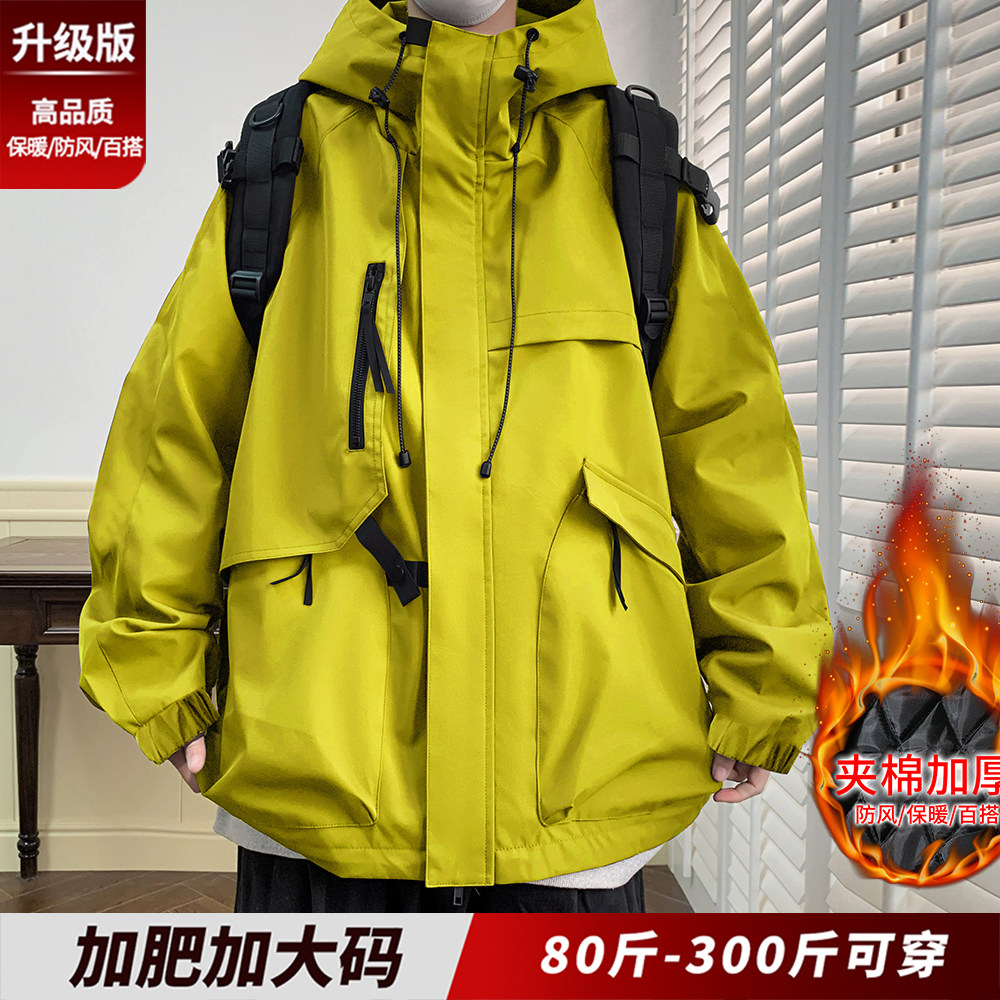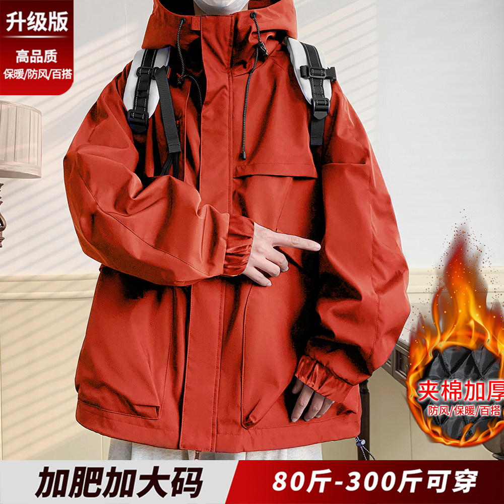 淘宝加棉冲锋衣男生衣服高级感秋冬防风保暖棉衣夹克宽松胖子加肥加大