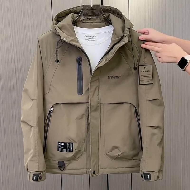 二棉外套男士冲锋衣连帽工装帅气青年百搭休闲棉衣男款夹棉夹克男