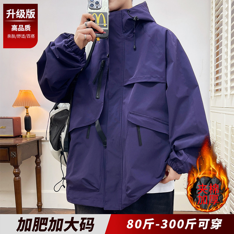 淘宝大码加棉外套男生秋冬宽松潮牌棉服防风防水保暖冲锋棉衣胖子宽松