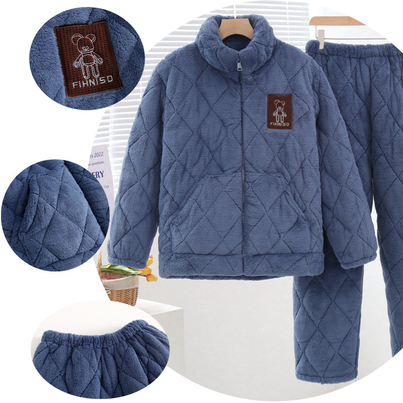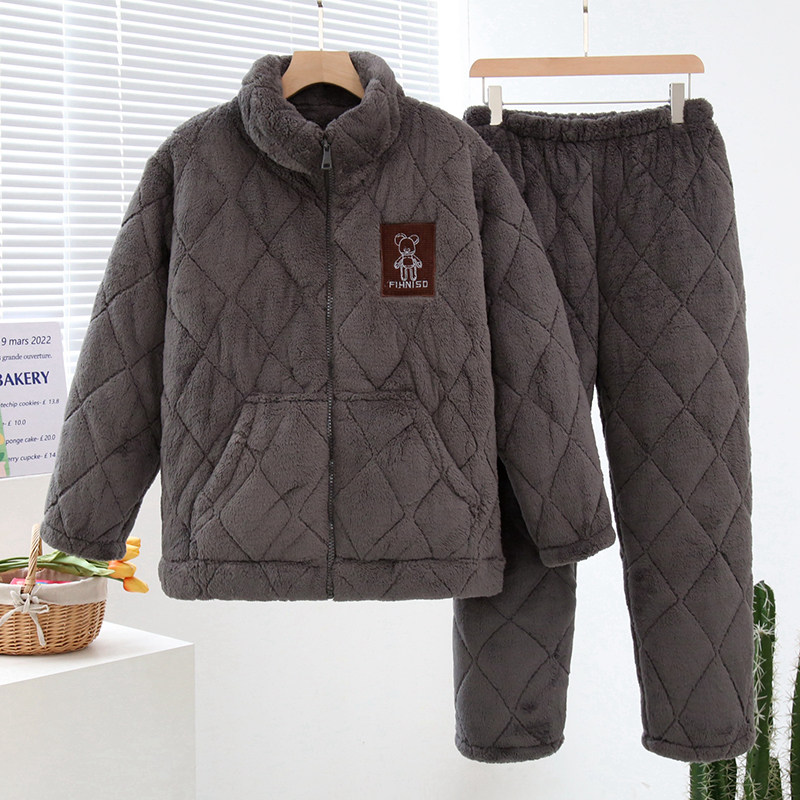 淘宝拉链男装三层夹棉加厚睡衣秋冬男士棉袄加绒加厚家居服套装可外穿
