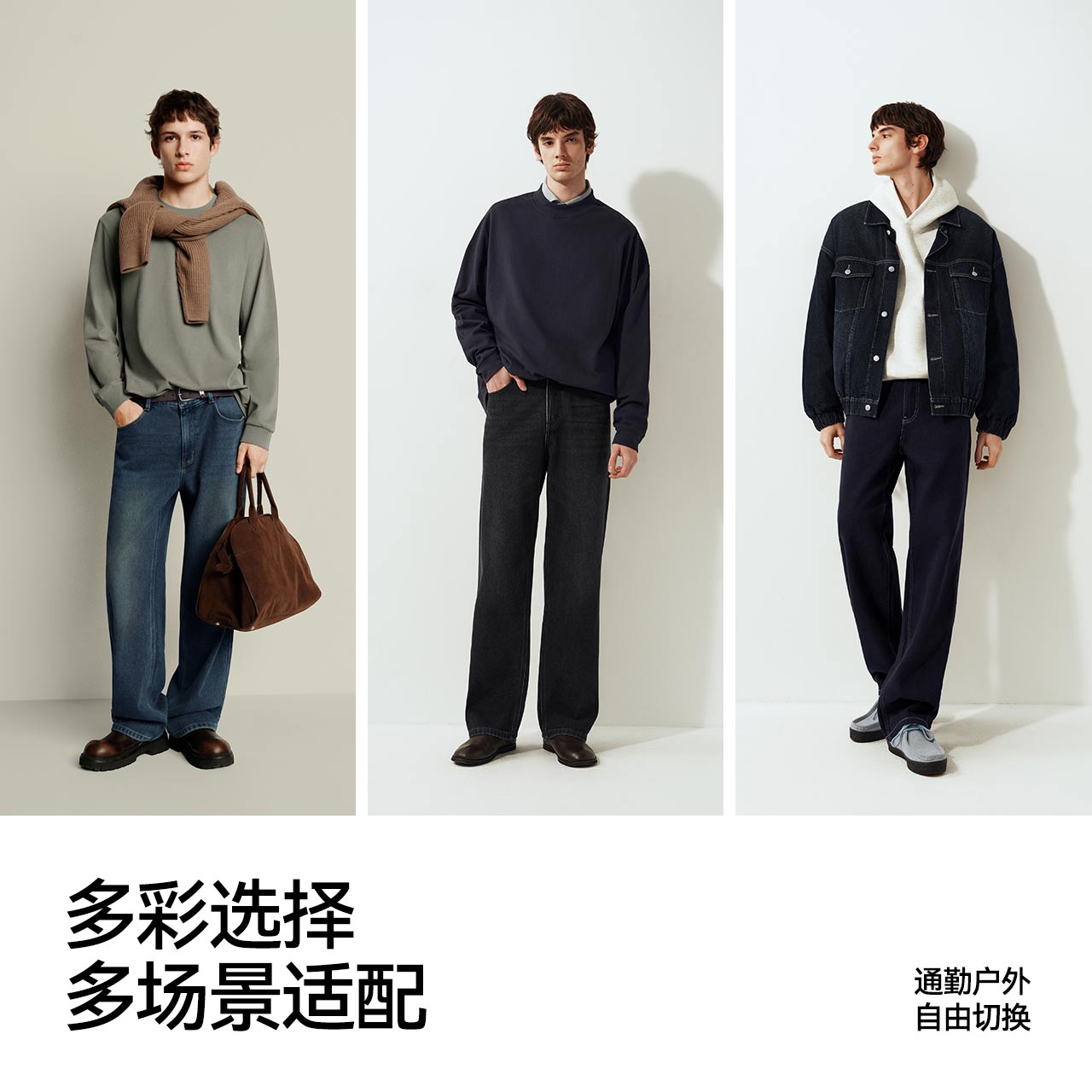天猫森马牛仔裤男猫须做旧复古宽松直筒裤2025秋冬新款长裤子经典质感