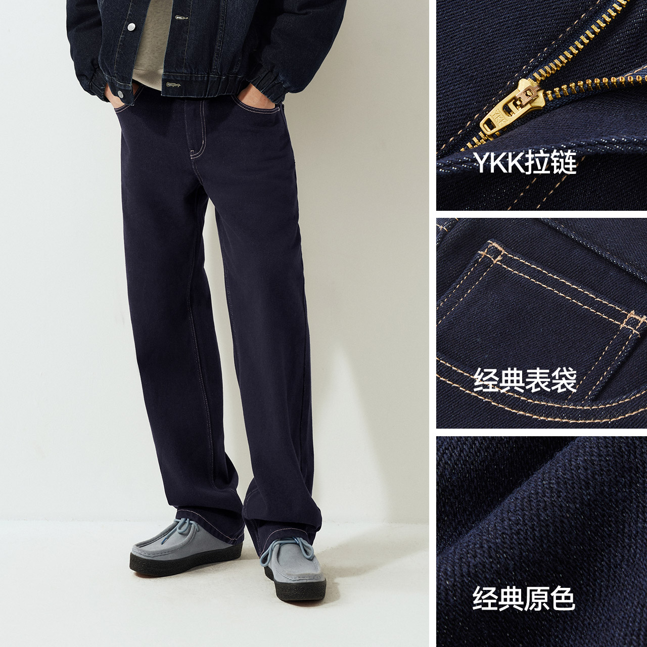 【含羊毛】柒牌加绒牛仔裤男秋冬厚款长裤中年爸爸休闲保暖直筒裤