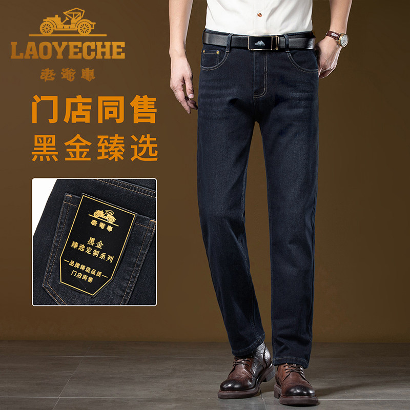 淘宝专柜正品老爷车秋冬季新款牛仔裤男宽松直筒弹力高腰加绒加厚长裤