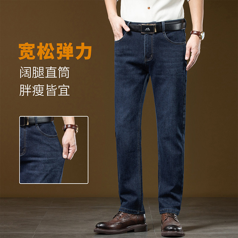 淘金盾2024新款加绒加厚牛仔裤男士高腰直筒男宽松高端休闲弹力长裤