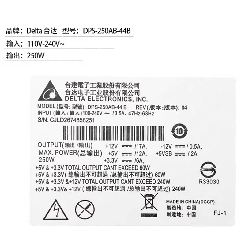 DPS-250AB-44B 是一款专为群晖(Synology)DS1815+、DS1515+ 及威联通(QNAP)TS-531 等 NAS 网络存储器设计的原装电源模块,额定功率为250W,具备高效稳定、低噪音和长寿命等特点。该电源采用优质元器件,支持宽幅电压输入,确保在不同电网环境下稳定运行,有效保障NAS设备持续供电与数据安全。其紧凑结构和标准接口设计,便于安装与维护,适用于家庭、小型办公室及企业级存储环境。作为关键硬件组件,DPS-250AB-44B 在系统冗余电源配置中尤为重要,可提升整体系统的可靠性与容错能力,是NAS设备稳定运行的重要保障。