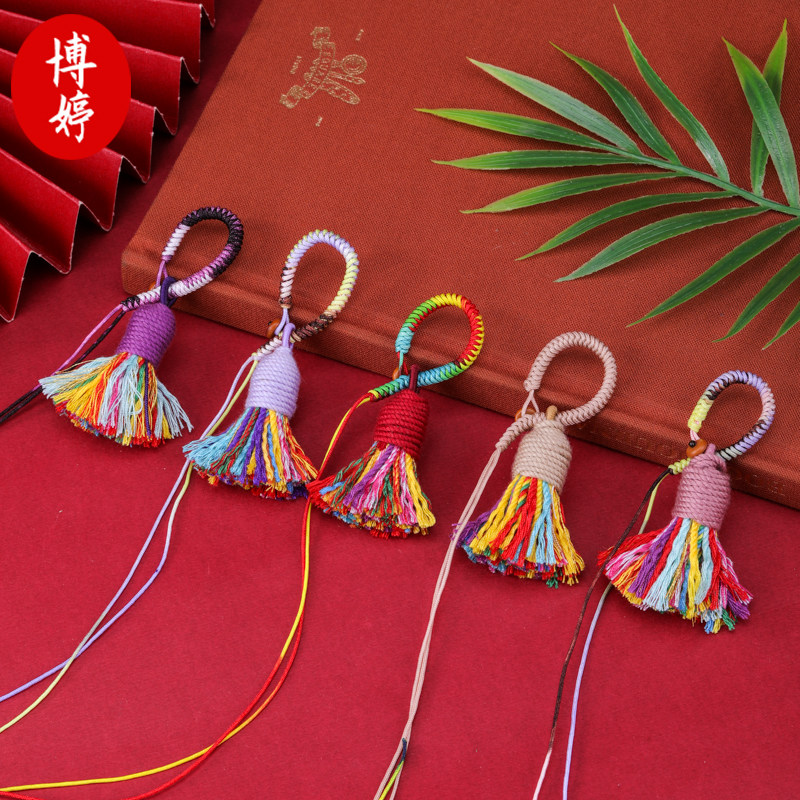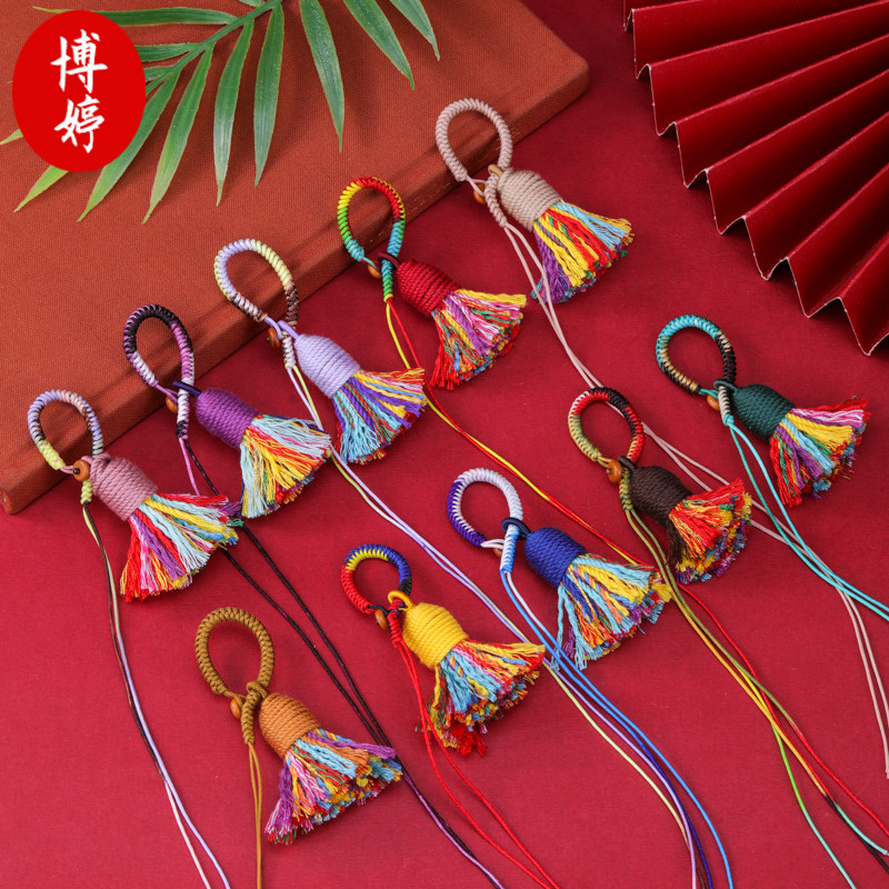 天猫4cm藏式棉穗钥匙扣挂绳金刚结指环扣敦煌色手工饰品宋锦挂件绳diy