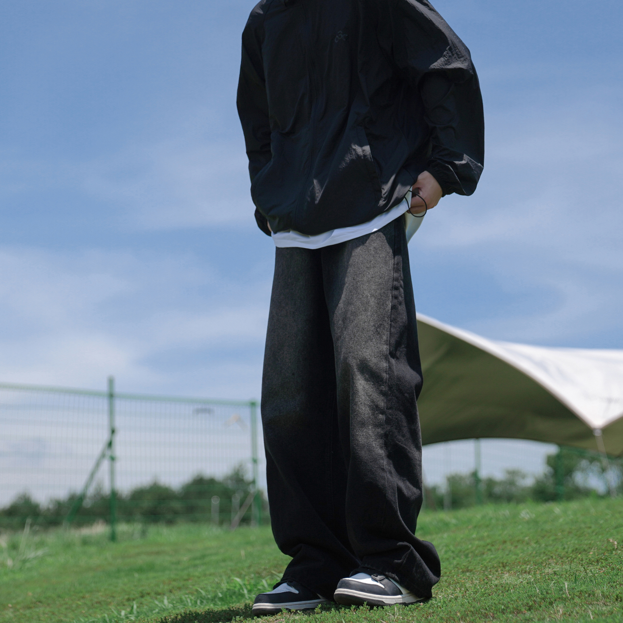 天有志者UZIS美式牛仔裤男款复古水洗阔腿裤休闲宽松运动长裤[2021M