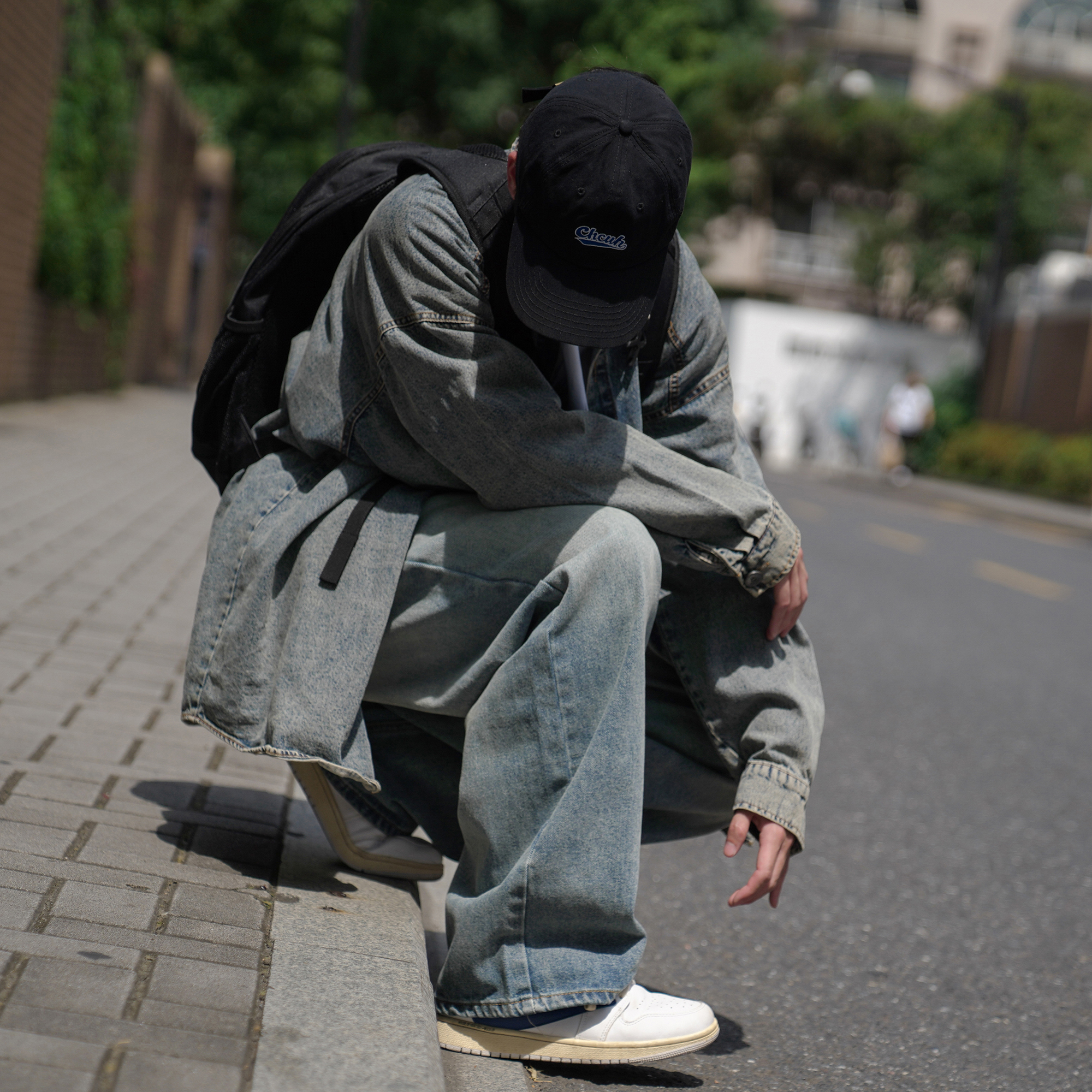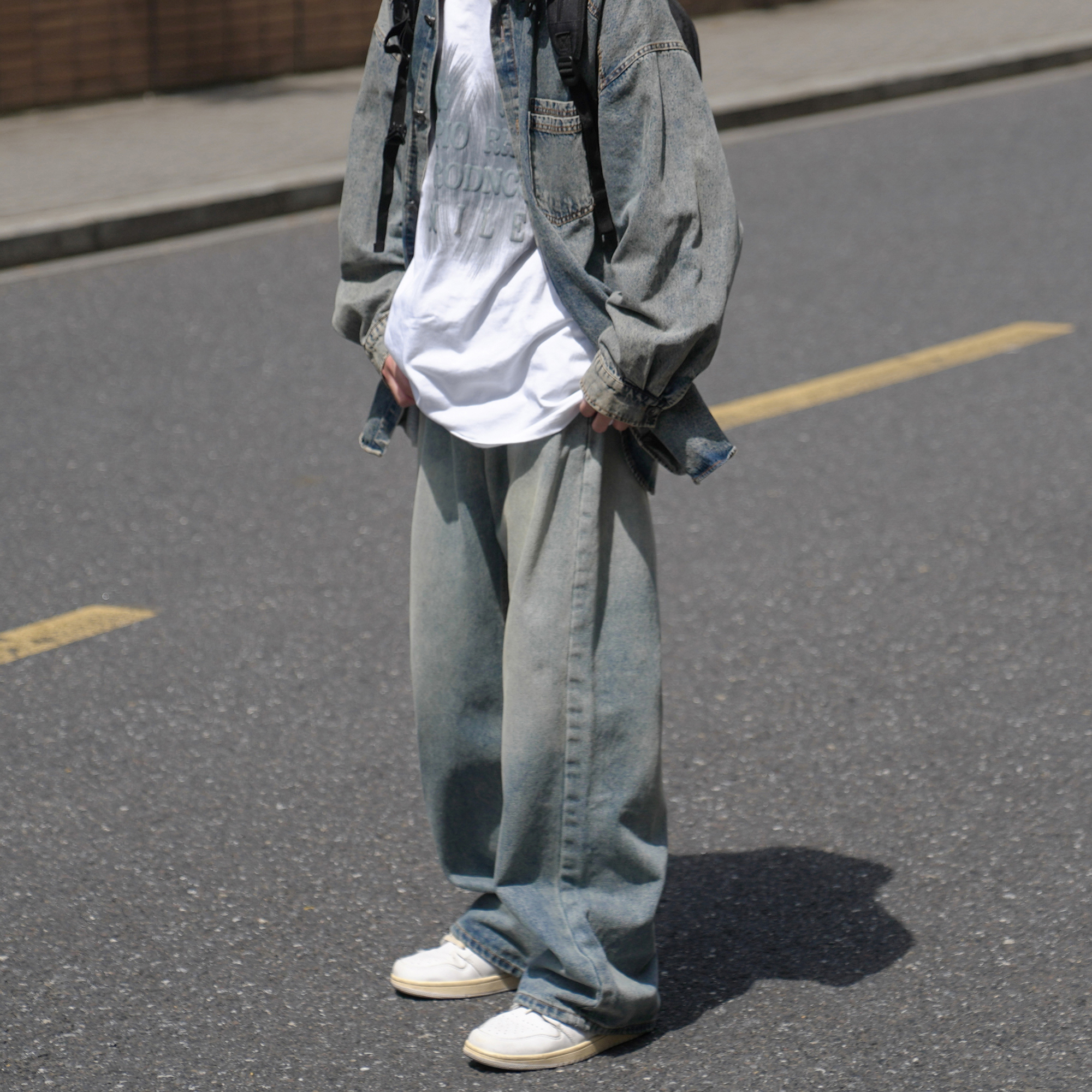 淘宝@港仔文艺男 做旧水洗牛仔裤男秋冬男生日系复古宽松阔腿休闲裤子
