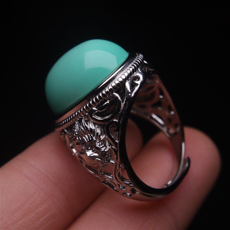淘宝优化高瓷绿松石蒙松鹅蛋面圆面戒指活口戒圈开口指环跑圈diy配饰