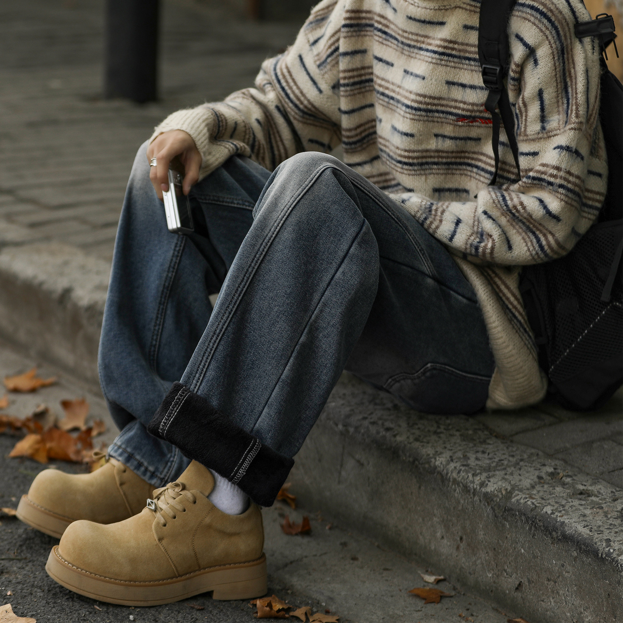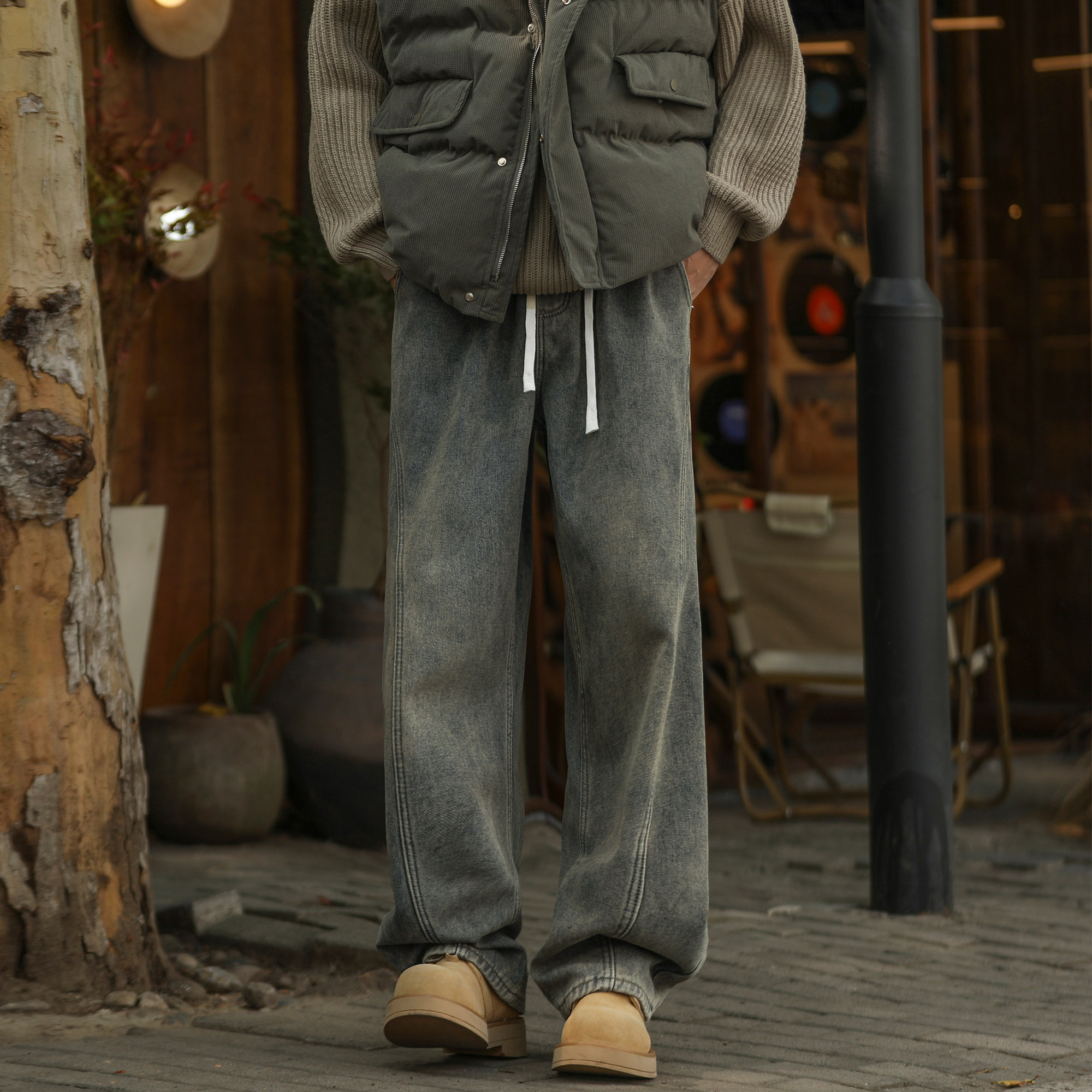淘老爷车牛仔裤男直筒宽松2025秋冬季新款中年高端高腰加绒加厚裤子
