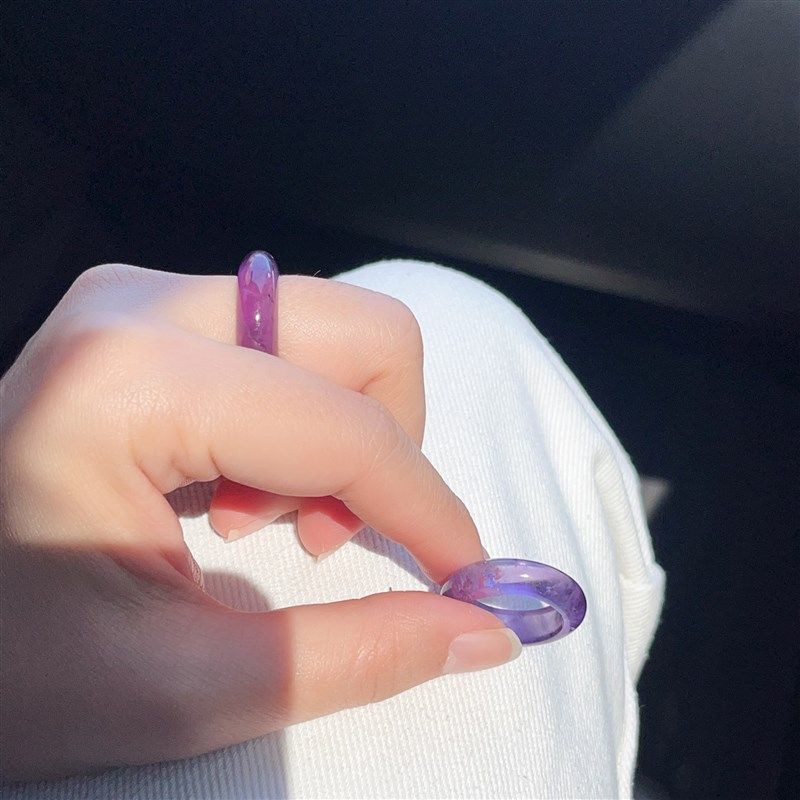 淘宝天然冰种紫水晶戒指 跑环指环戒圈 男女款极简紫色宽条百搭素圈