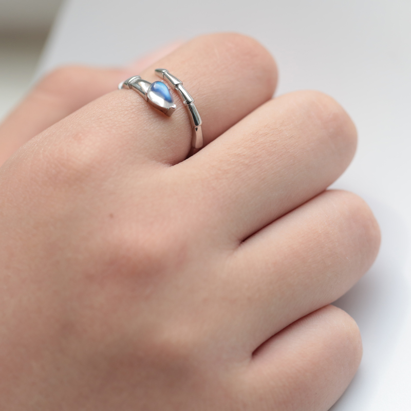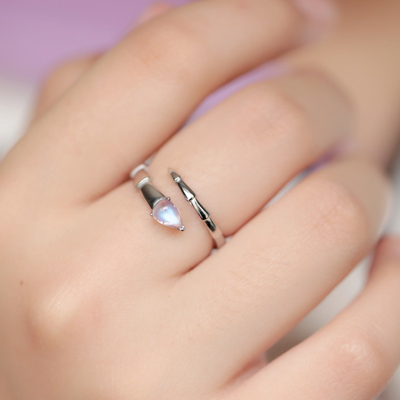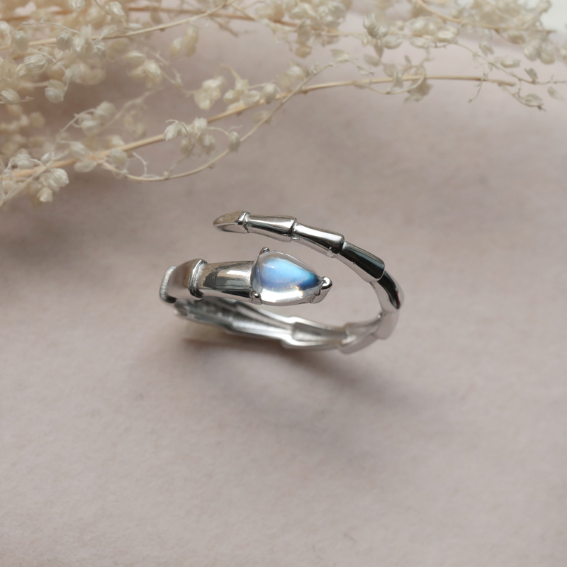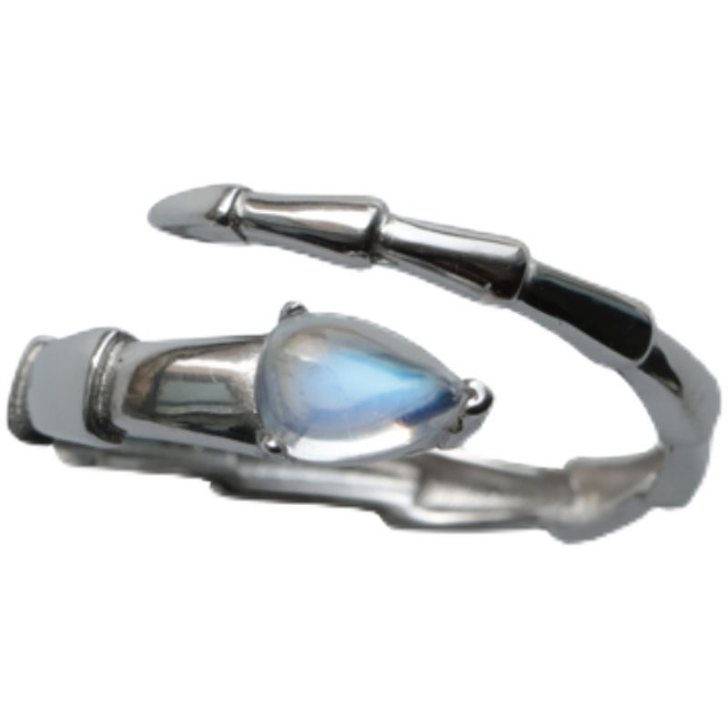 淘宝天然月光石纯银蛇形戒指开口指环女小众设计感轻奢高级感精致礼物
