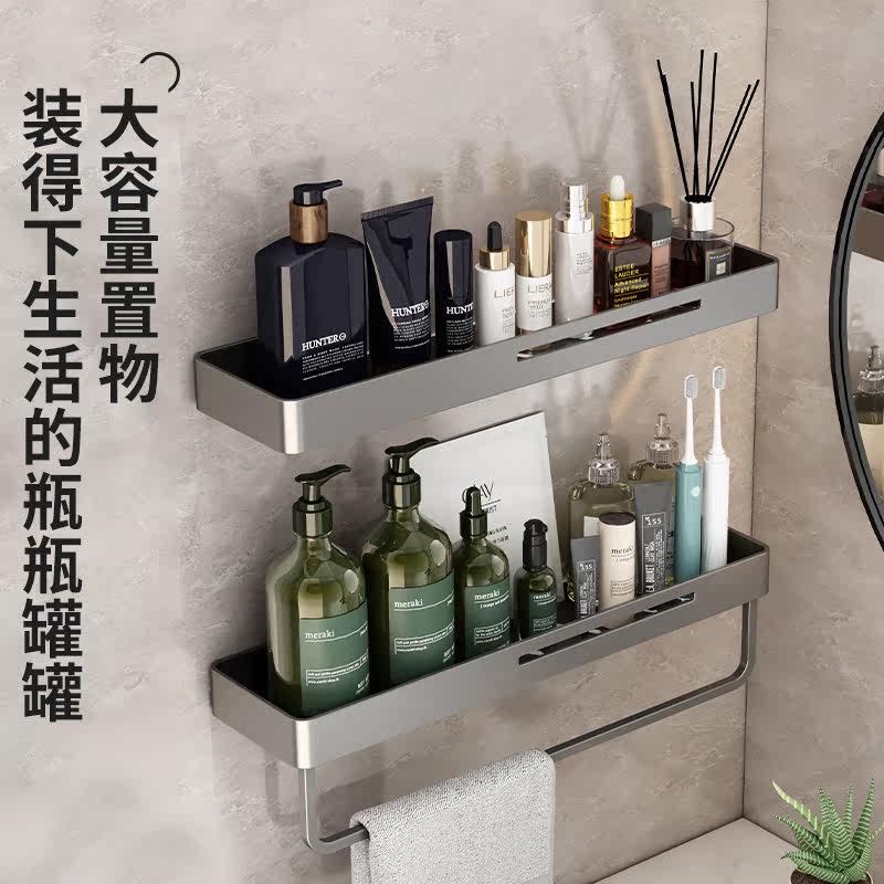 天猫卫生间洗漱台镜前置物架壁挂墙上免打孔洗手间厕所浴室收纳架枪灰