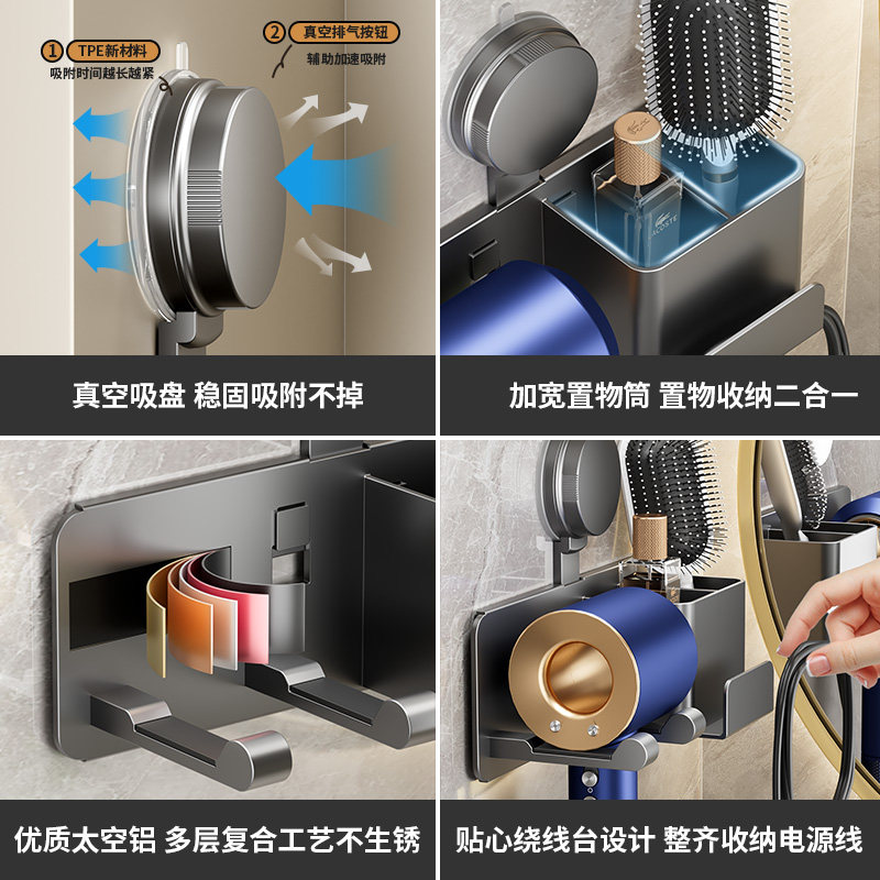 天猫日本吸盘吹风机置物架免打孔电吹风挂架浴室壁挂风筒支架收纳架子