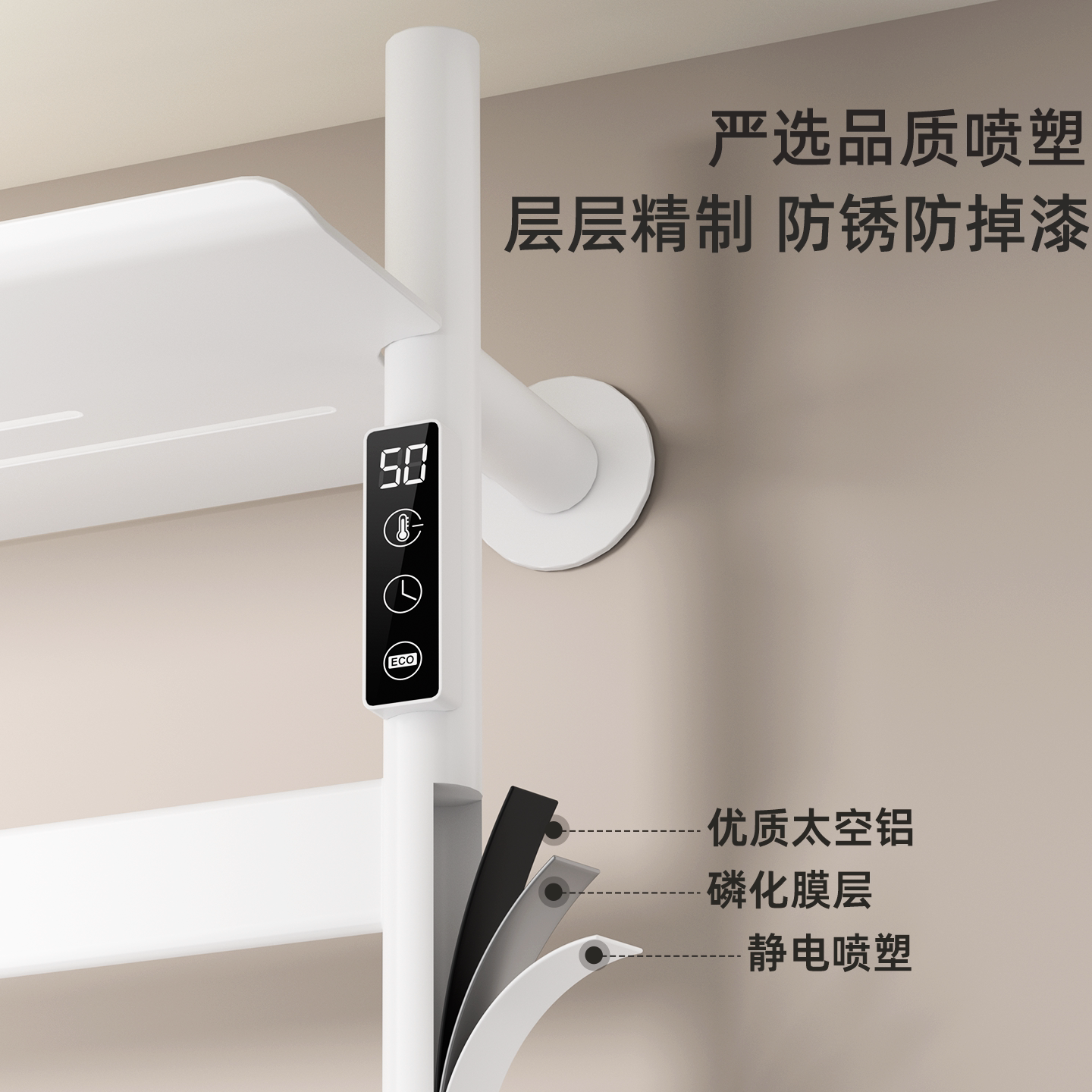 天猫【新品】艾芬达智能电热毛巾架子烘干除湿抑菌毛巾浴室置物架GD40