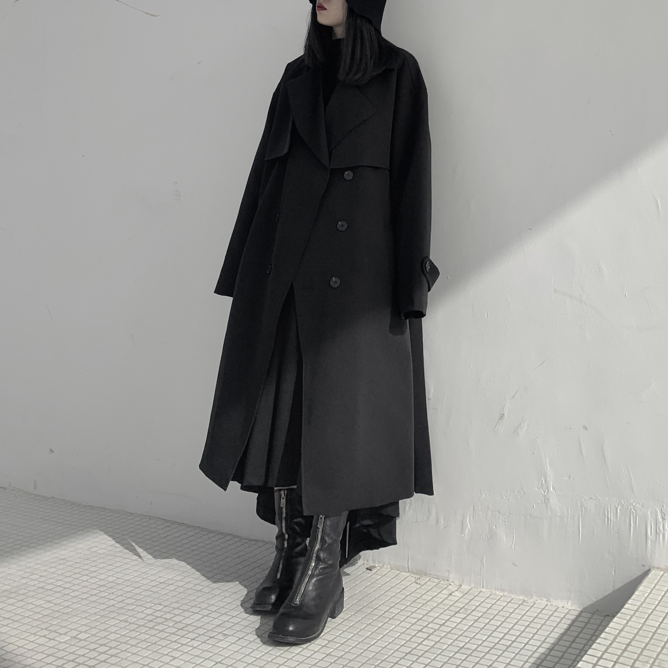 淘宝冬季新品山本暗黑系小众设计师长款夹棉风衣外套棉服加厚黑色女装