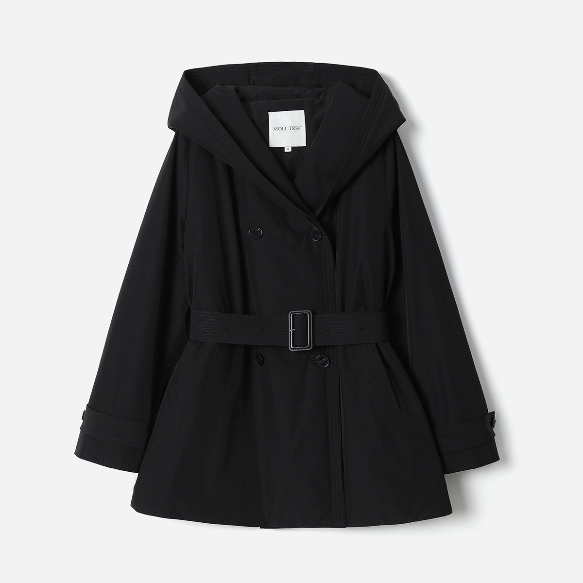 淘宝WYR08068 茉莉雅集 复古摩登95白鹅绒连帽风衣款系带鹅绒羽绒服