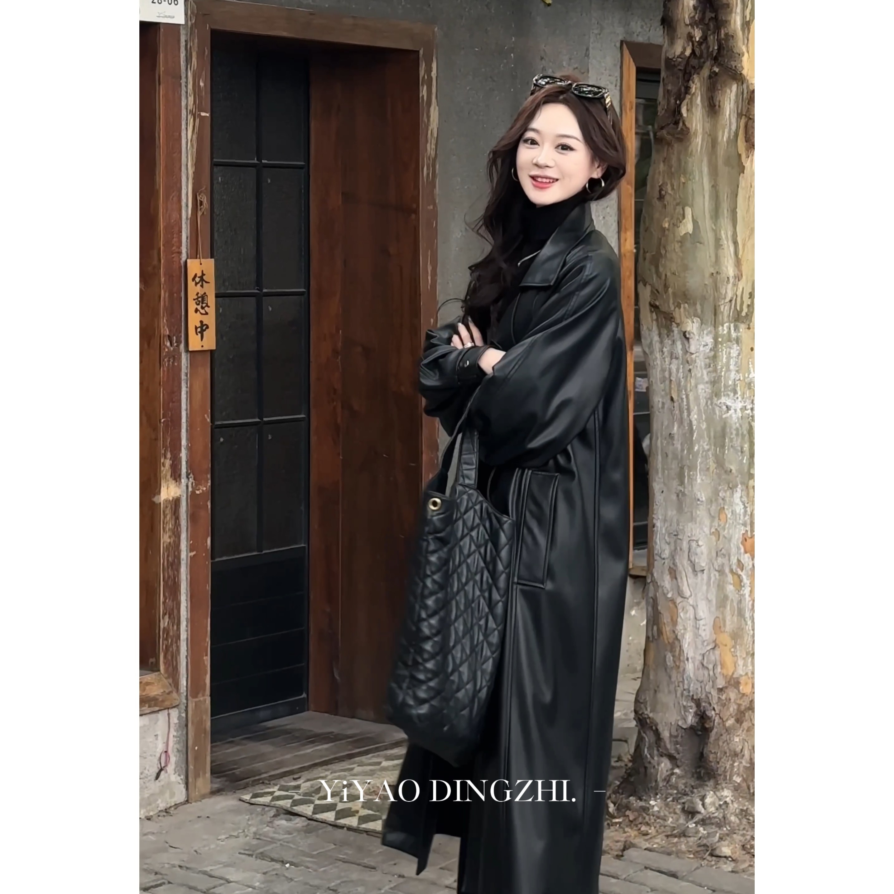 淘宝设计感2025秋冬款高端显瘦加绒两面穿中长款皮衣外套女时尚皮风衣
