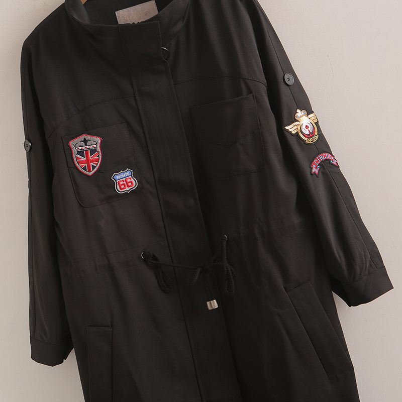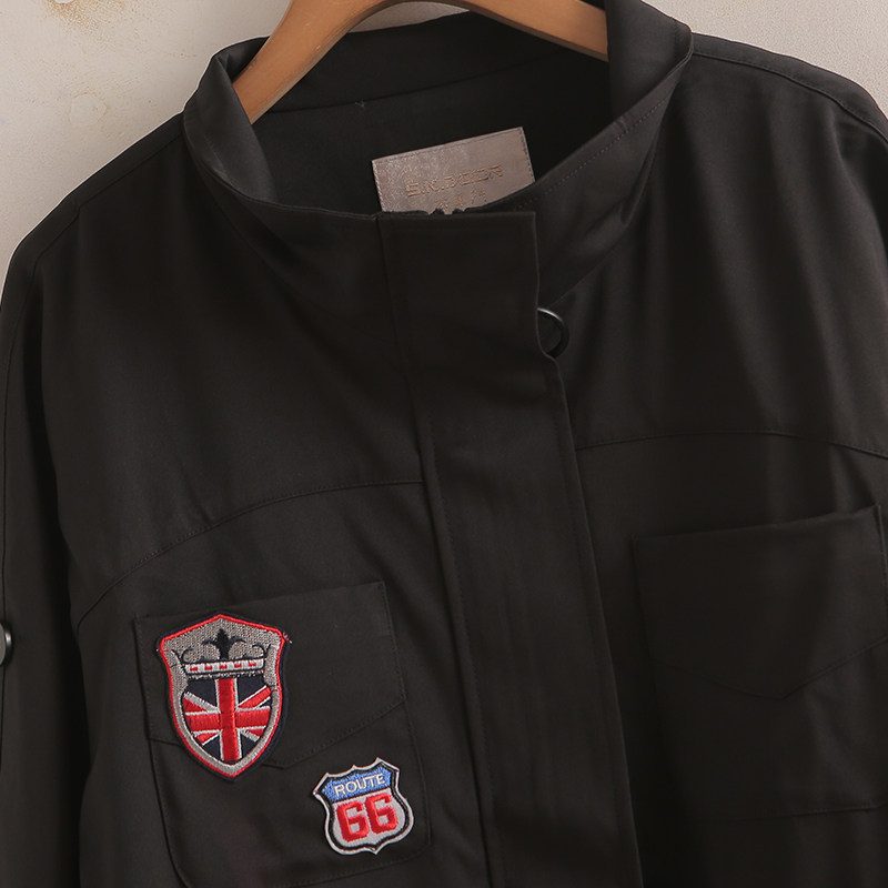 天设计师款佐丹奴工装夹克女装纯棉铆钉翻领中长款风衣外套18375911
