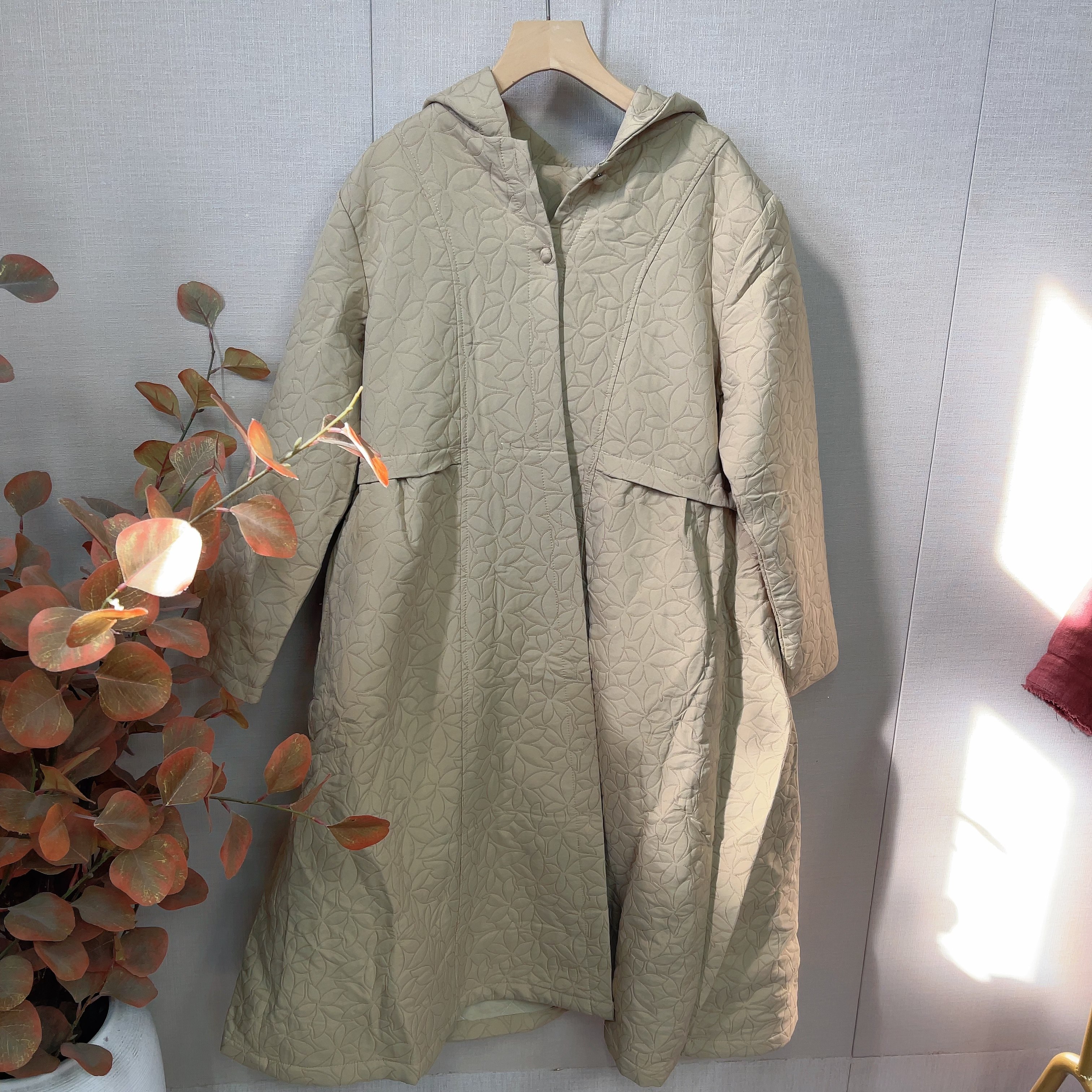 这款复古提花加厚中长款连帽风衣,融合国风美学与现代实用设计,专为秋冬打造。采用精致提花面料,纹理细腻,彰显文艺雅致气质;加厚内衬保暖舒适,适合寒冷季节穿着。中长版型搭配宽松剪裁,巧妙修饰身形,显瘦又藏肉,尤其适合大码女性。连帽设计增添休闲感,袖口与下摆细节考究,整体轮廓挺括有型。无论是搭配针织衫还是长裙,都能展现温婉知性的东方韵味,是秋冬衣橱中兼具温度与风度的时尚单品。