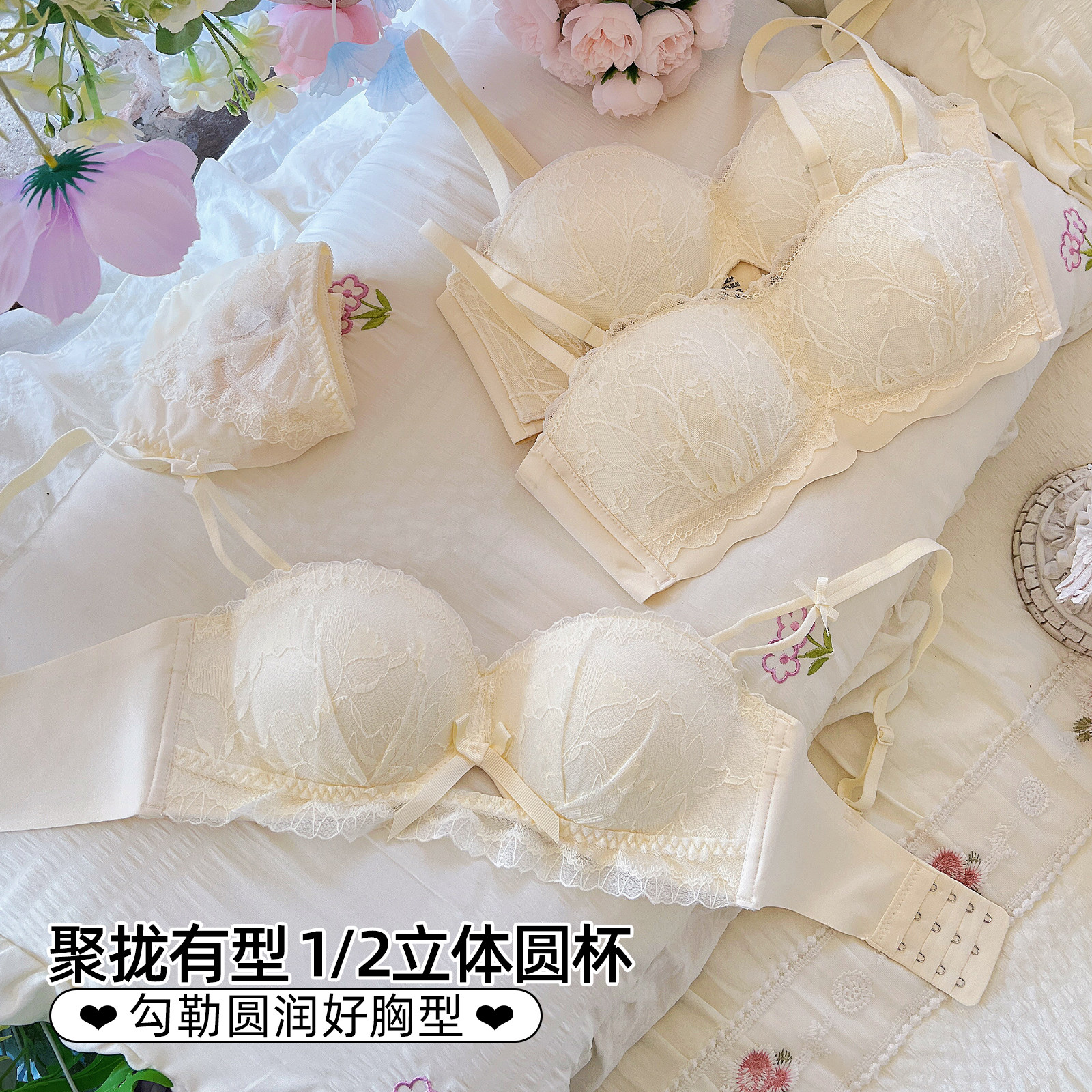 聚拢内衣女士小胸显大调整型收副乳防下垂性感蕾丝夏季文胸罩套装