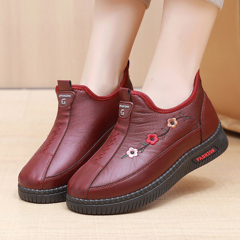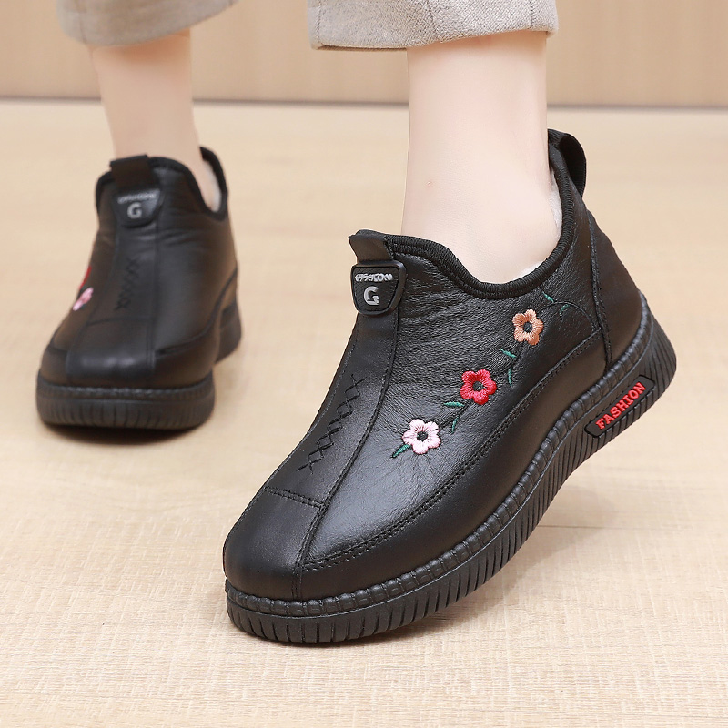 淘宝绵羊毛棉鞋女冬加绒加厚妈妈鞋皮面防水棉靴子软底防滑中老年女鞋