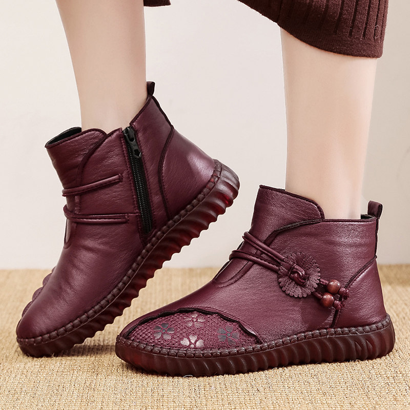 淘宝冬季新款老北京布鞋女棉鞋中老年妈妈加绒加厚保暖女鞋平底短靴子