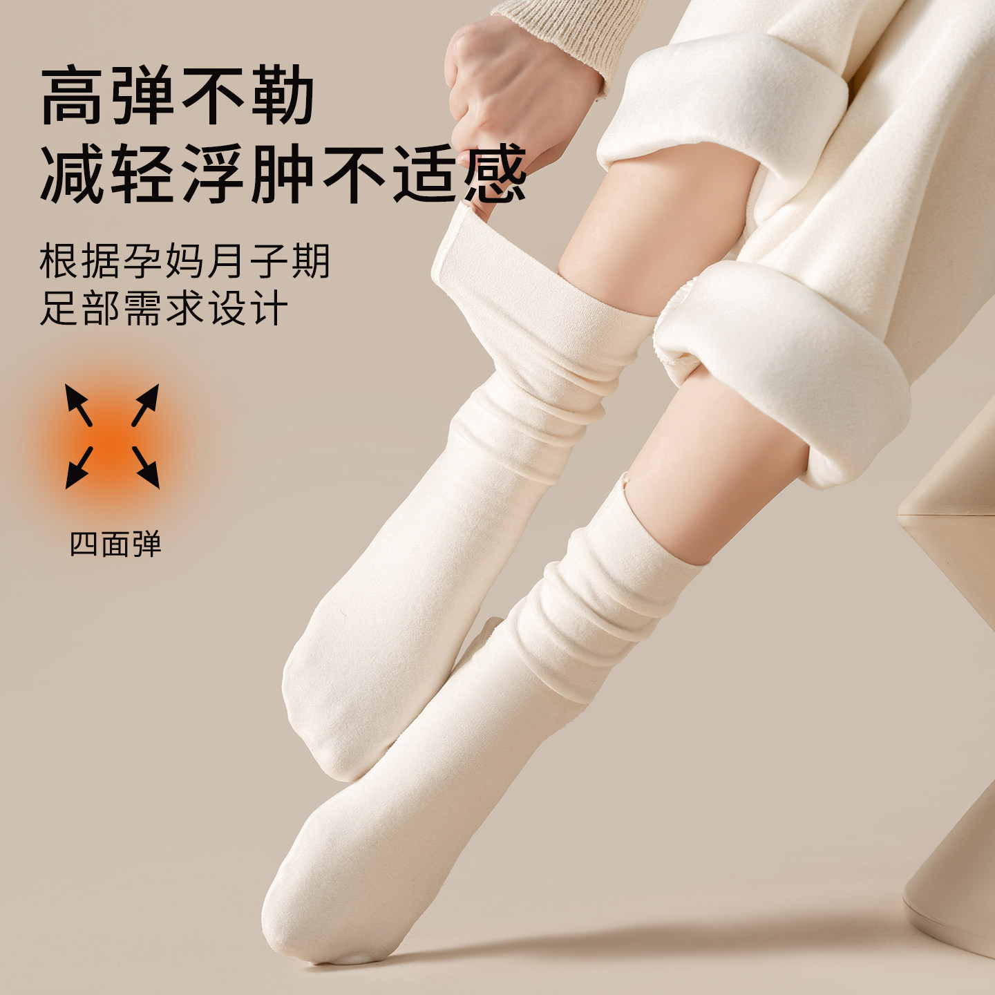 天猫月子袜冬季德绒孕妇中筒产妇袜子加厚堆堆袜产后宽松简约松口袜女