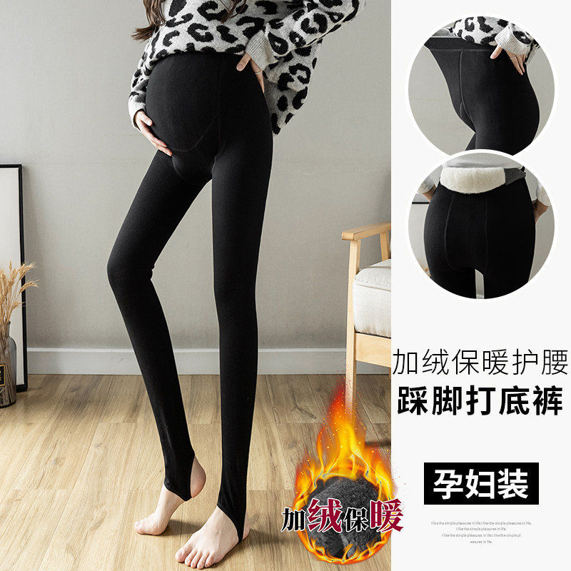 淘清仓大码孕妇打底裤加厚加绒外穿孕期加肥加大托腹可调节踩脚裤袜