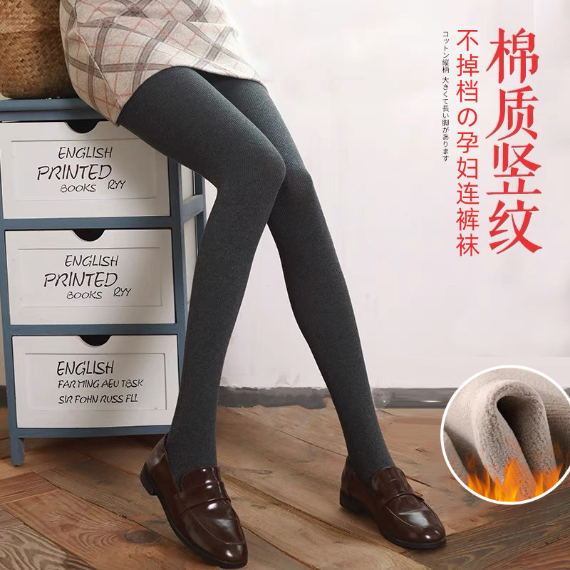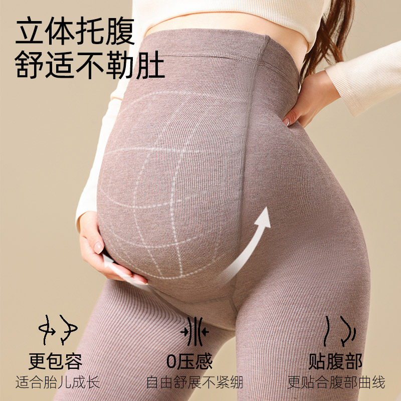 淘孕妇打底裤打底袜秋冬外穿托腹裤子竖条纹春秋裤袜冬季加绒加厚