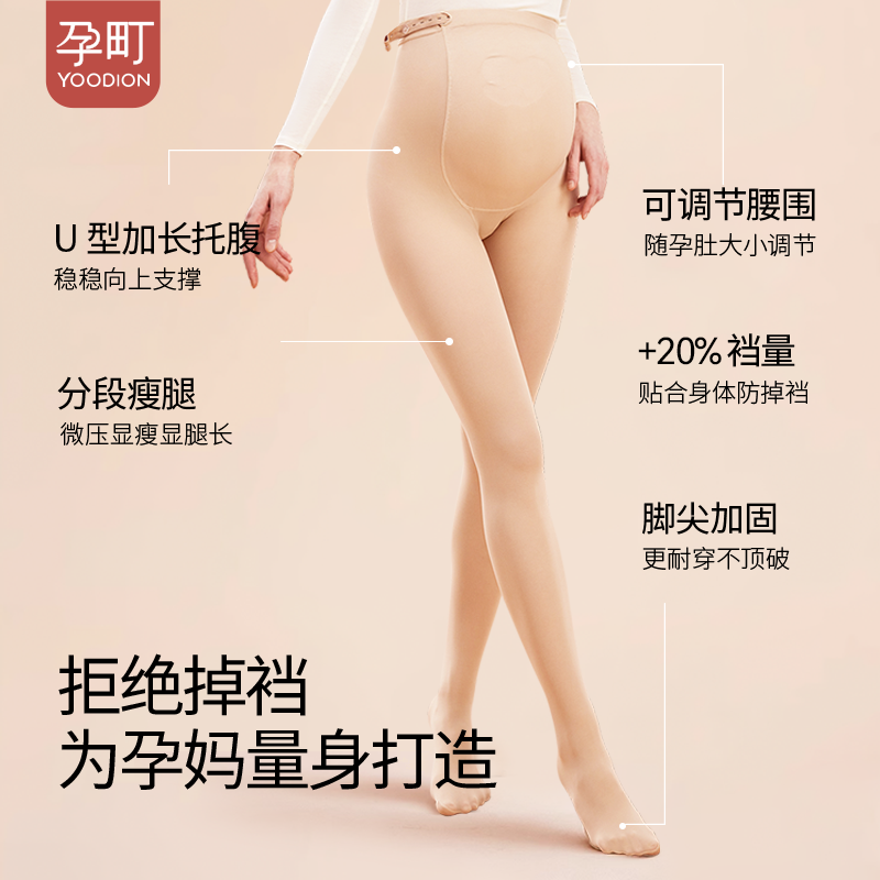 孕町孕妇打底袜专为孕期及产后女性设计,兼顾舒适与美观。采用高弹亲肤面料,腹部加宽托腹设计,不勒腰腹,有效缓解孕期压力。秋冬款加厚保暖,春秋款轻薄透气,四季皆宜。肉色自然,贴合肤色,宛如“光腿神器”,搭配裙装或裤装皆宜。连裤连体设计防下滑,高腰收腹更显瘦。特别加入月子期适用考量,柔软无骨缝工艺,呵护敏感肌肤。无论是日常出行、办公还是产后恢复,孕町打底袜都以贴心细节和优质体验,成为准妈妈们的时尚必备单品。
