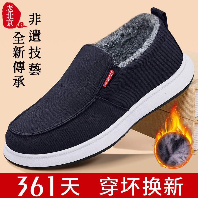 天猫老北京布鞋男冬季新款加绒加厚保暖中老年爸爸鞋防滑休闲帆布棉鞋
