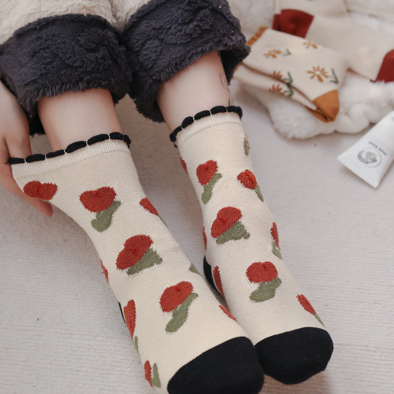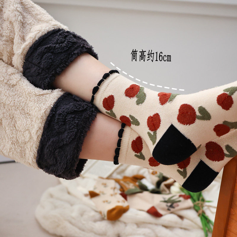 天月子袜冬季德绒孕妇中筒产妇袜子加厚堆堆袜产后宽松简约松口袜女