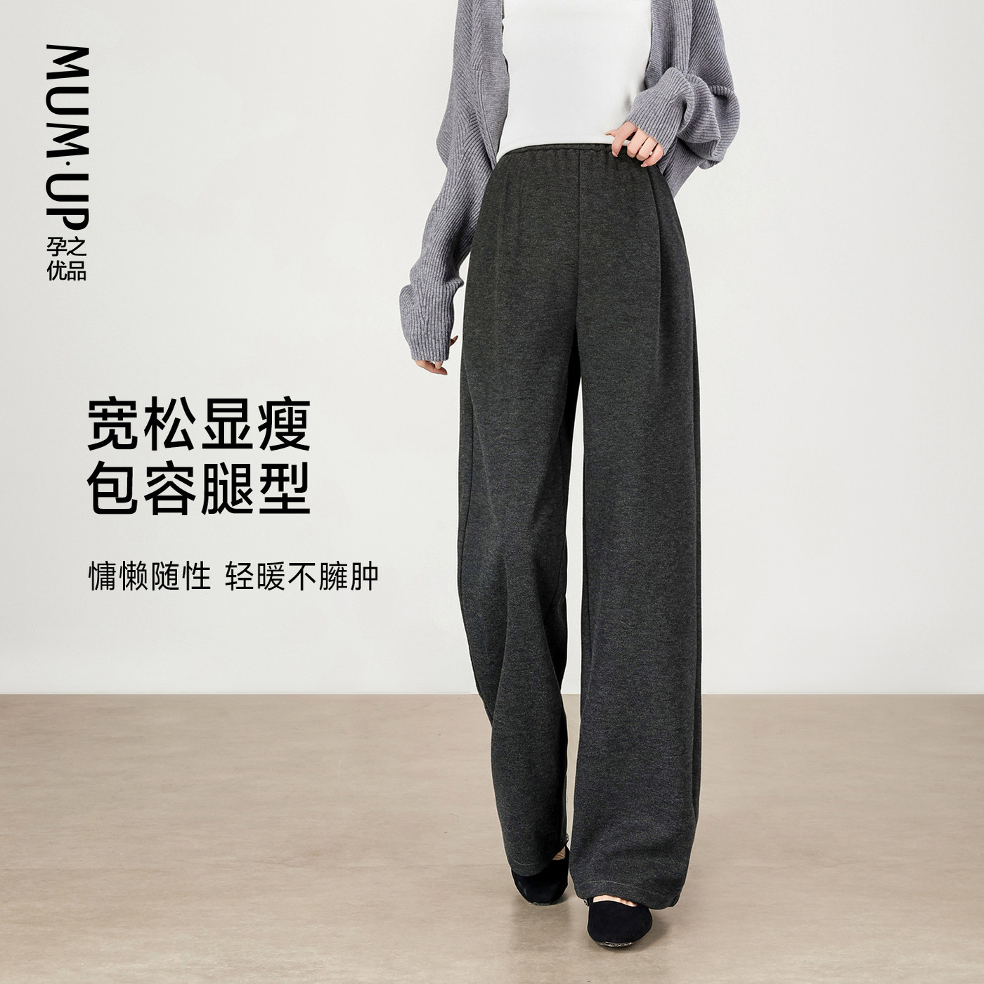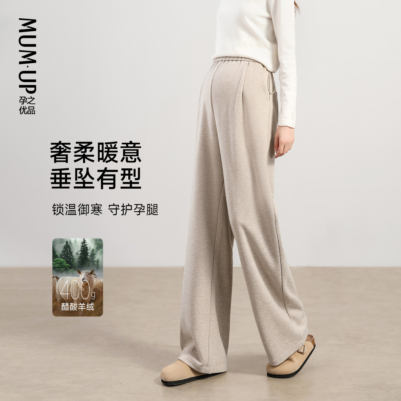 淘ellieluke孕妇阔腿裤冬季外穿孕期小个子无托腹加绒加厚长裤春装