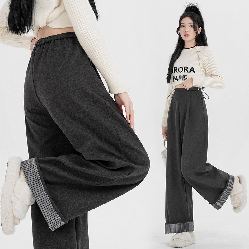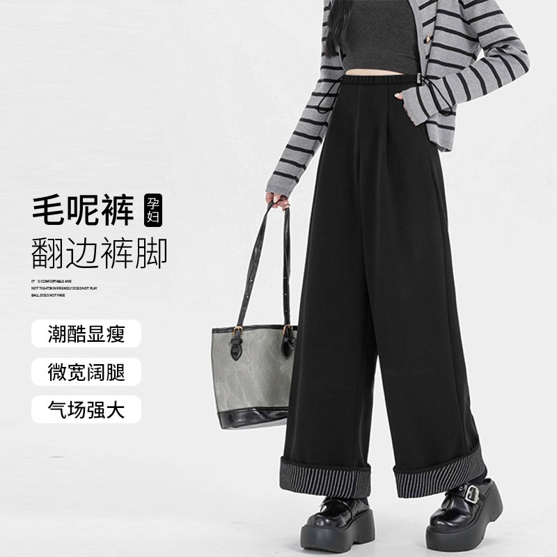 淘ellieluke孕妇裤冬季外穿加绒加厚休闲长裤小个子春秋阔腿直筒裤