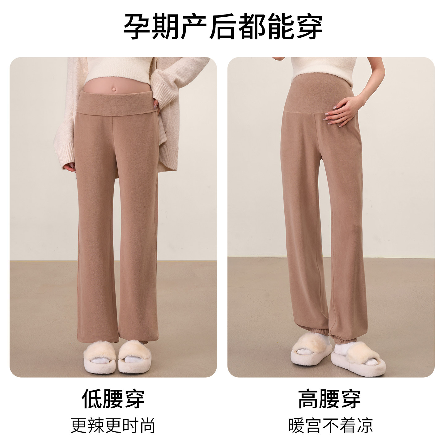 ◆AMUM孕妇装◆加厚蚕丝羊绒高腰修身喇叭裤休闲百搭抽绳拖腹裤