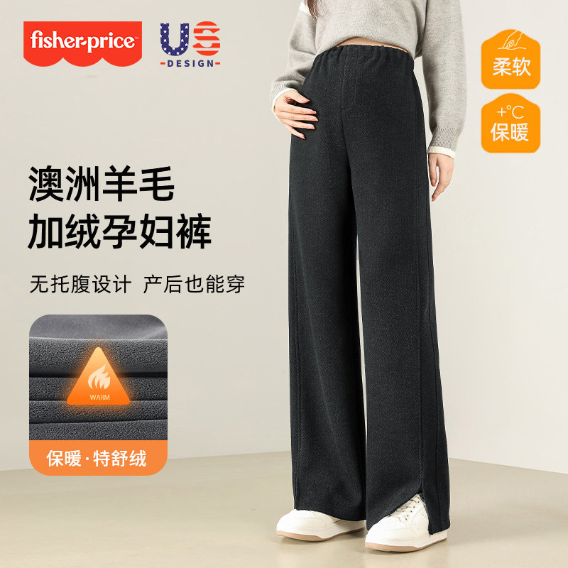 孕之彩孕妇裤冬加绒加厚外穿休闲阔腿裤低腰托腹不勒肚子直筒长裤