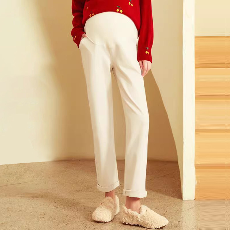天孕妇裤春秋冬外穿阔腿打底裤猪鼻扣休闲托腹糯米加绒加厚长裤秋装