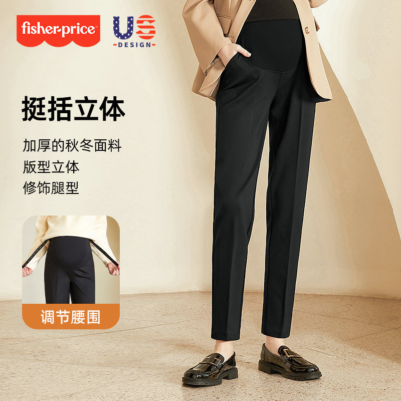 天猫费雪孕妇裤子外穿加绒职业通勤西装裤托腹烟管裤加厚小个子打底裤