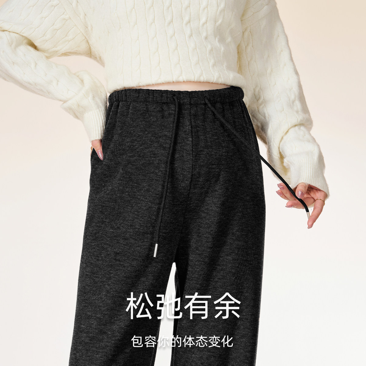 淘宝ellieluke孕妇裤子秋冬款加绒加厚冬季外穿无托腹糯米阔腿裤冬装