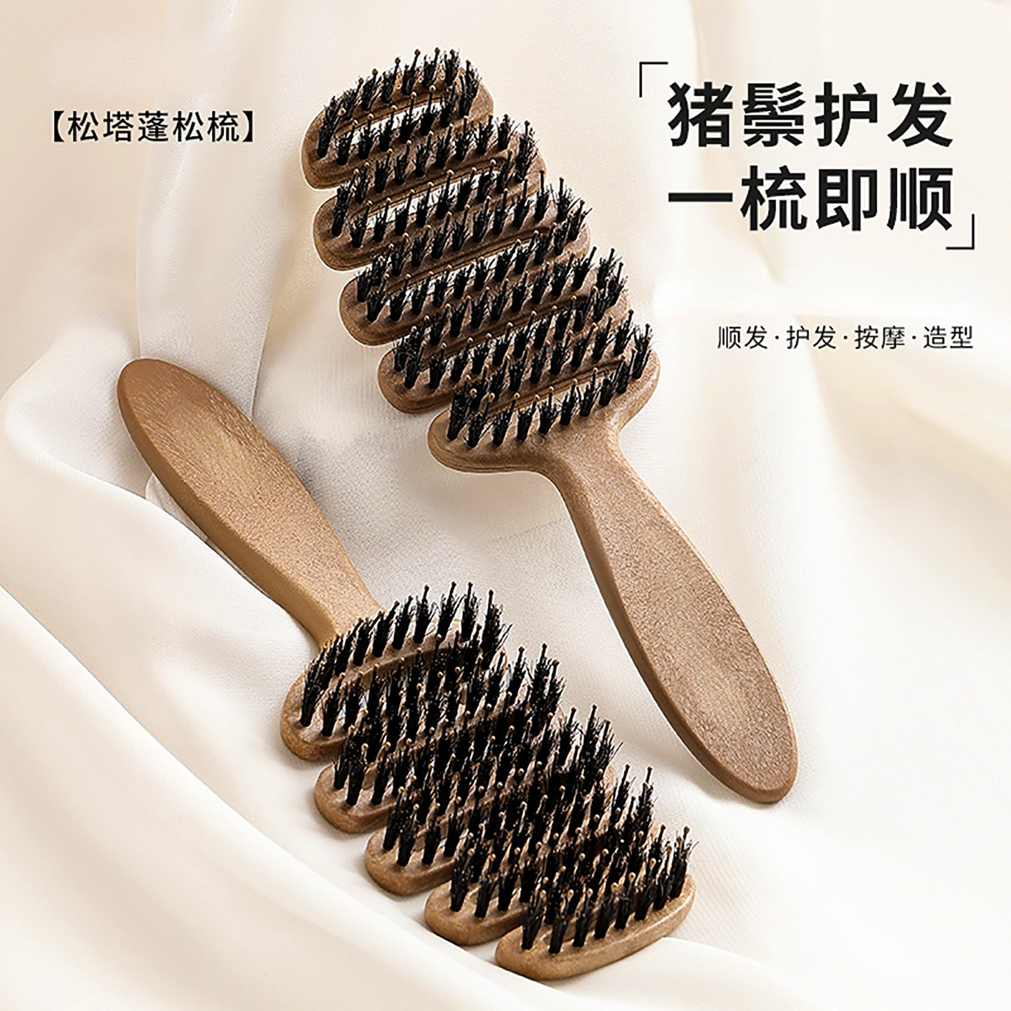 松塔猪鬃护发梳发顶蓬松神器按摩头部顺发排骨梳网红梳子女士专用
