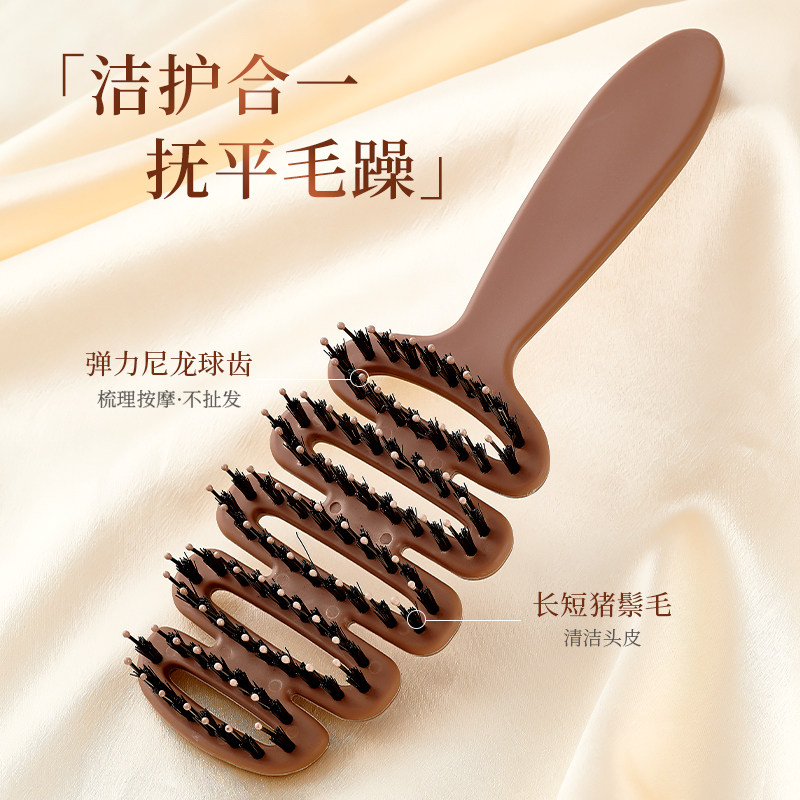 松塔猪鬃护发梳发顶蓬松神器按摩头部顺发排骨梳网红梳子女士专用